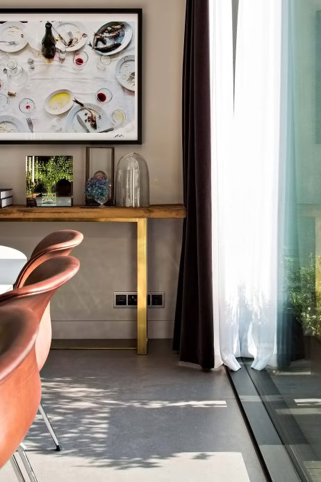 An atrium, secluded by walls and a pool house, unites the interior and exterior spaces. On the ground floor are the master bedroom and several ample social spaces, as well as a winter garden, kitchen, sauna, etc. The upper floor is the children’s realm, comprising a living room, bedrooms and a sizeable family bath.