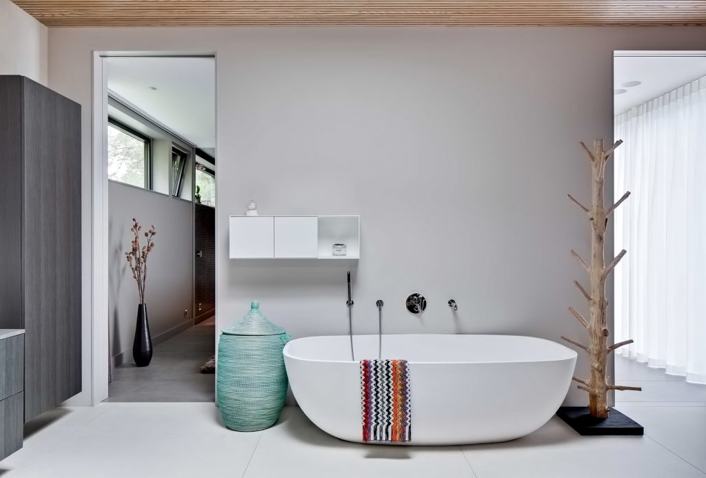 The floor plan is an attempt to merge different room types without the bulk of unnecessary walls and doors, with spaces opening onto each other in clear sequence and often with subtle shifts. Villa J can provide room for socializing or seclusion and even both simultaneously.