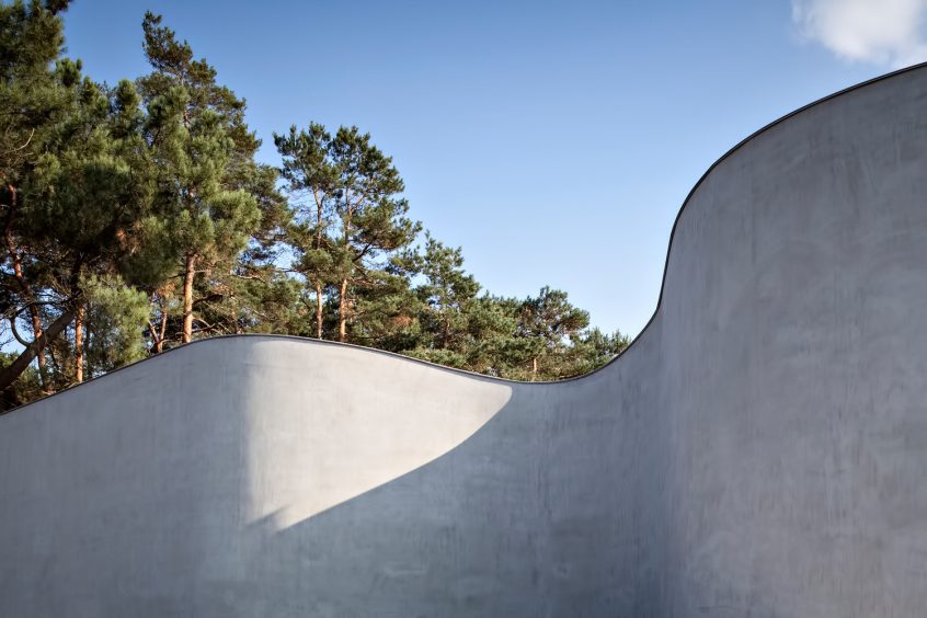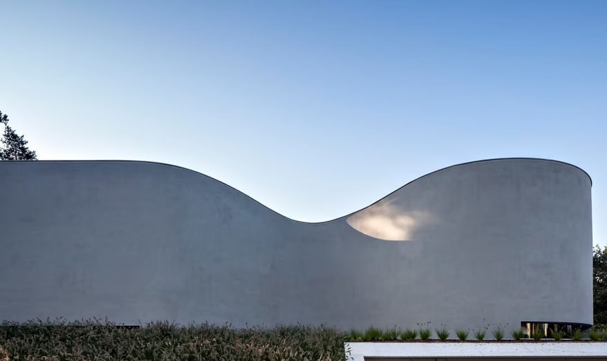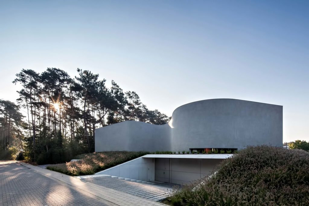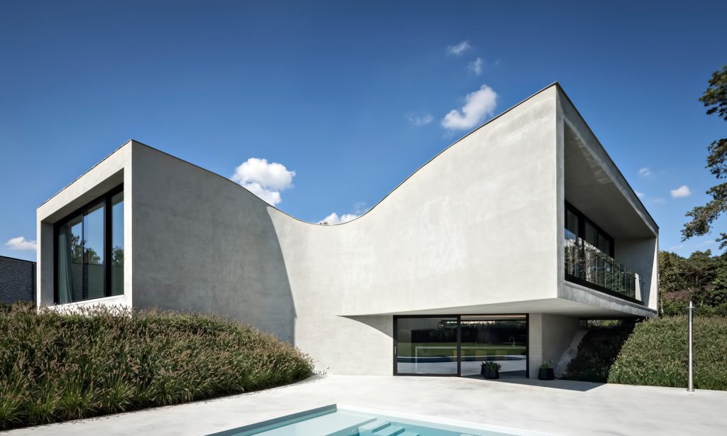 With its wave-like concrete façade, the building turns its back to the street, fortifying both the privacy of its views and the exclusivity of its living environment. The uninhibited interior spaces unfold, with the admiring orientation of the structure, opening up to a shielded terrace and pool at the rear delivering the transparent clarity and enlightenment of a truly unique organic luxury living experience.