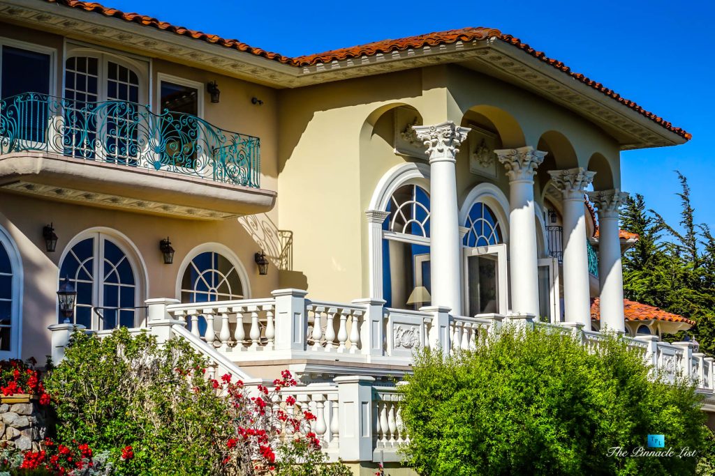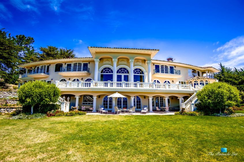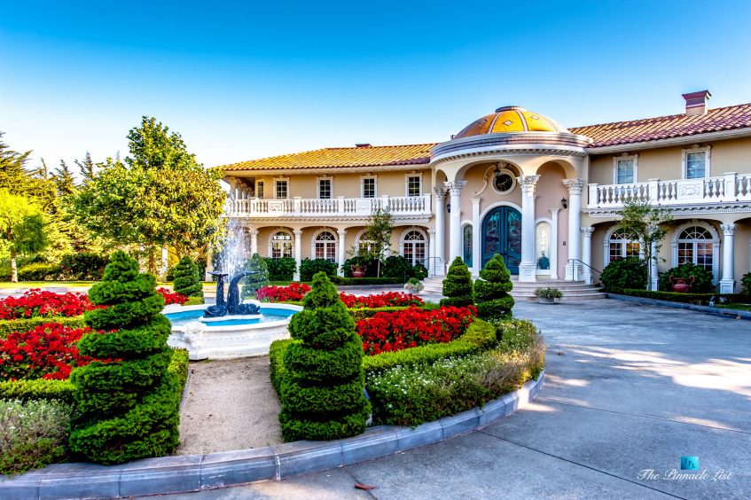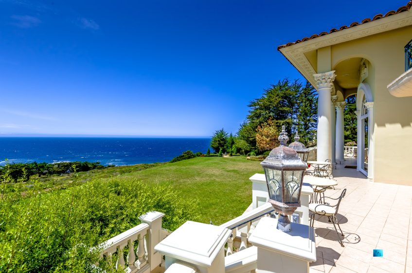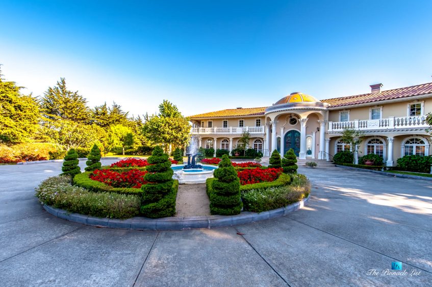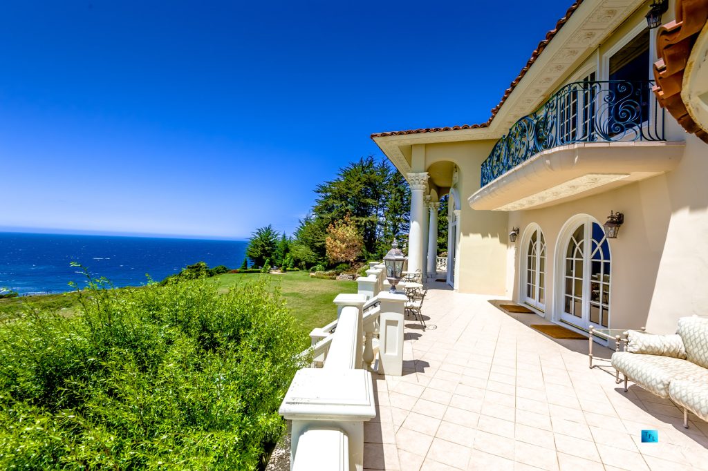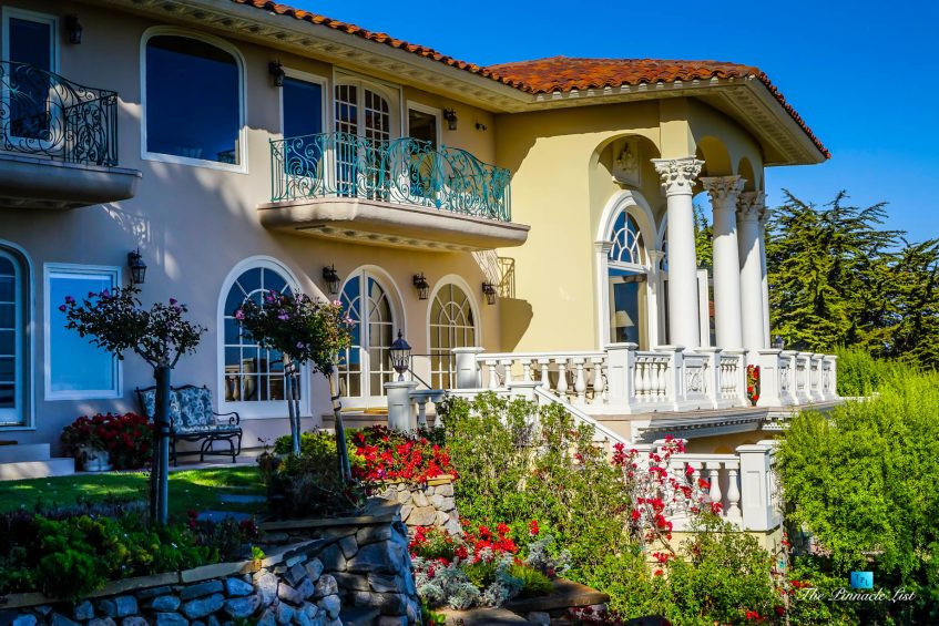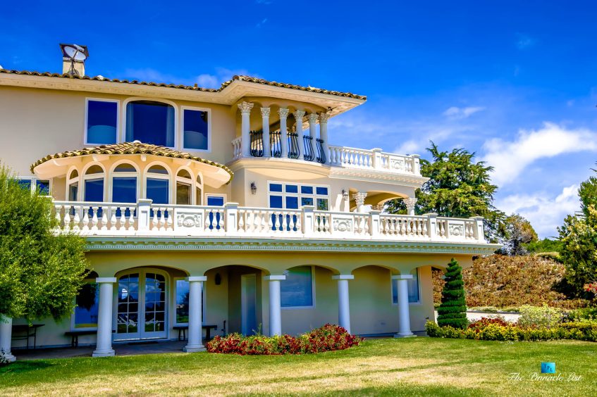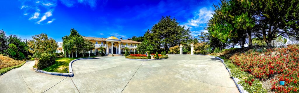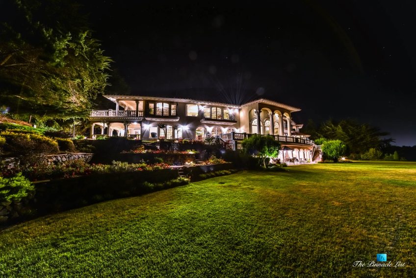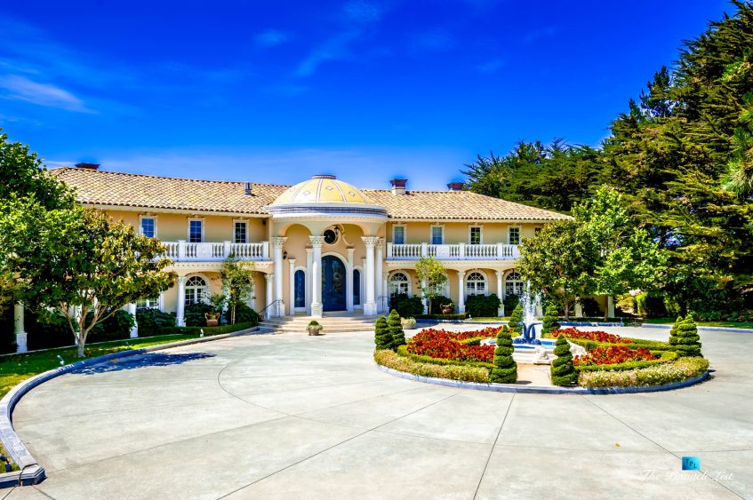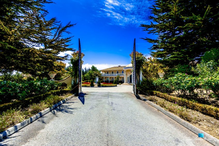 Set upon the lush green hills above La Selva Beach, Villa Viscaya is an sensational 13,200 sq. ft. luxury Mediterranean Oceanfront residence perched high on a private 12.8 acre gated bluff top property overlooking the serene and breathtakingly beautiful panoramic vista views across California’s Monterey Bay.