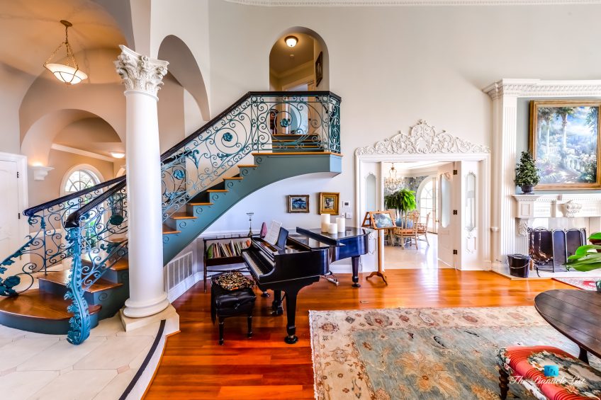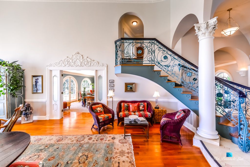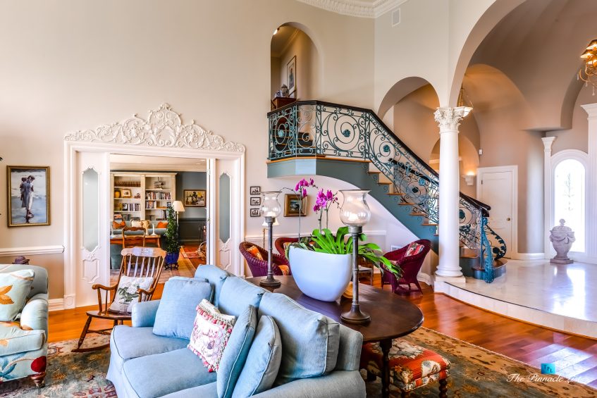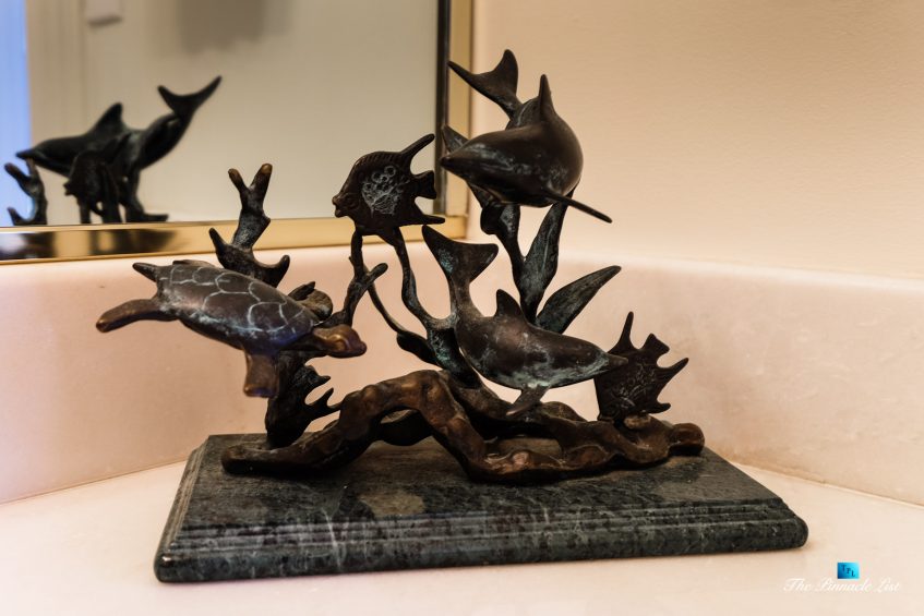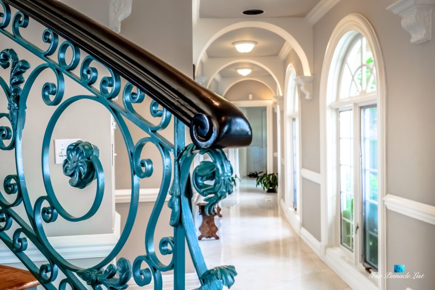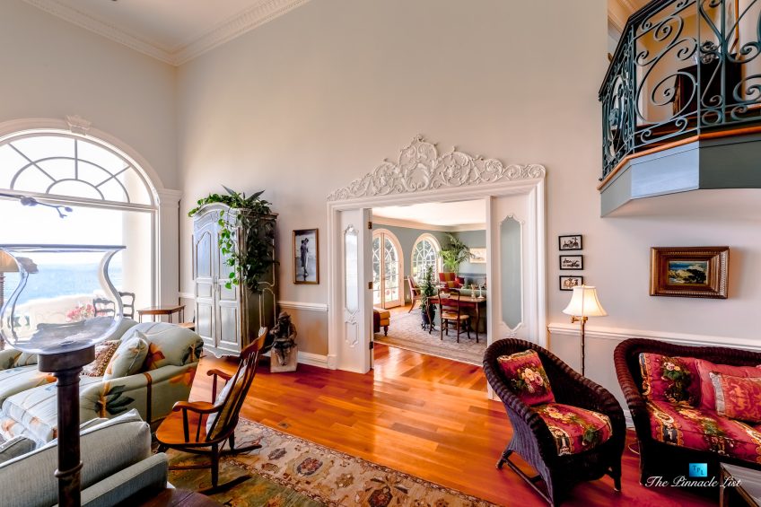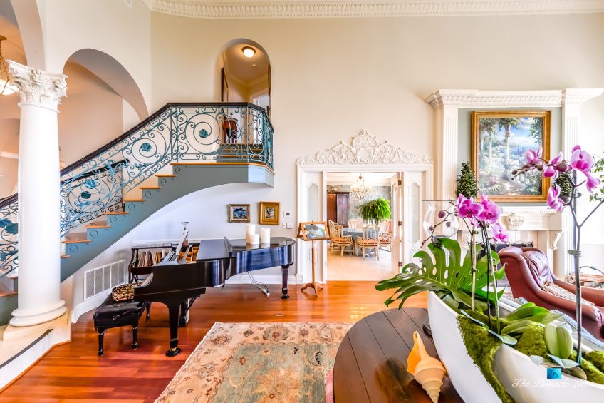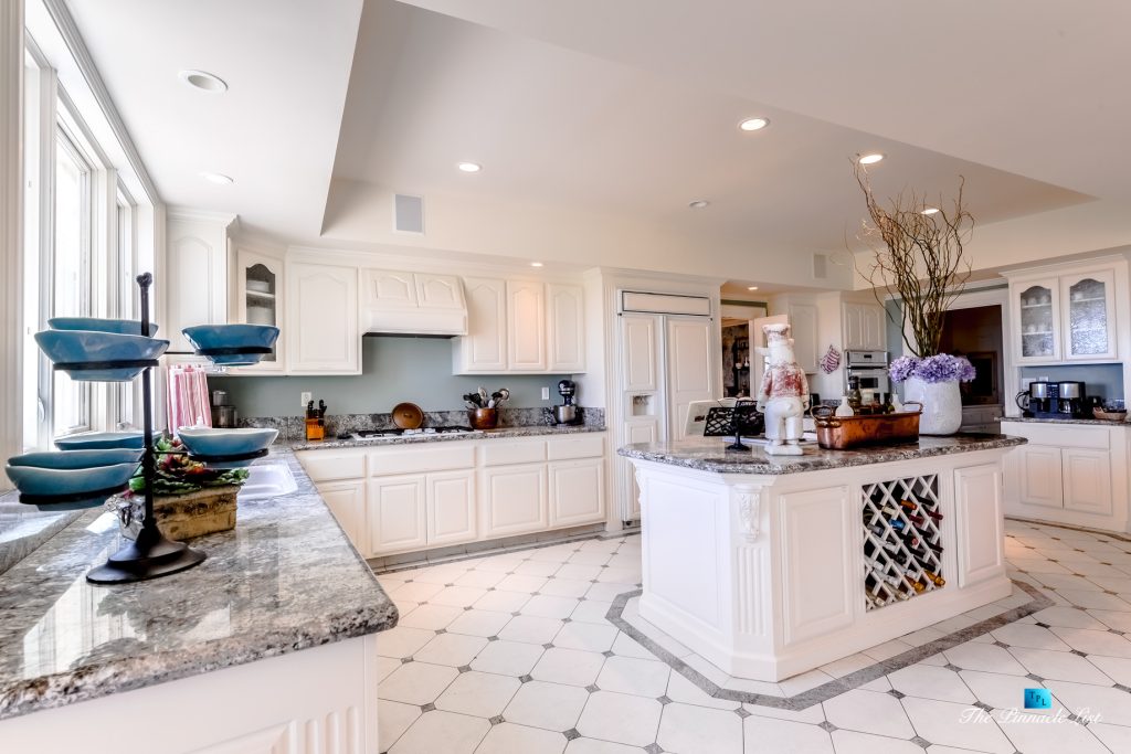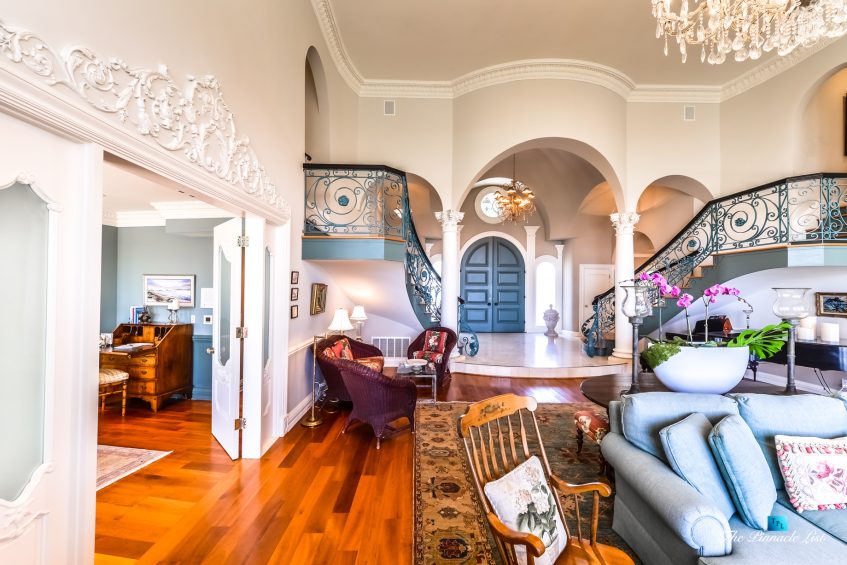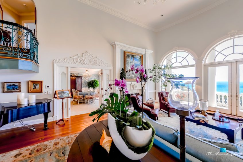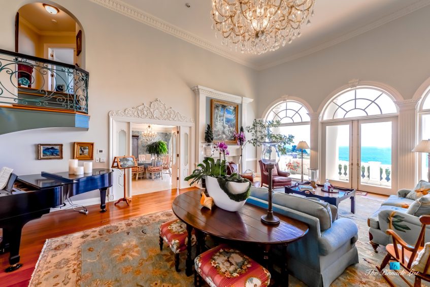 The residence embraces spectacular ocean views from almost all main rooms and bedrooms. The impressive formal great room and dining room, fully equipped Gourmet chef’s kitchen with granite counters, custom cabinetry and large center island are all blending into expansive family entertaining areas. The generous master suite resonates peace and tranquility with the sheer perfection of the beautiful landscaped gardens below and the stunningly dramatic ocean views.