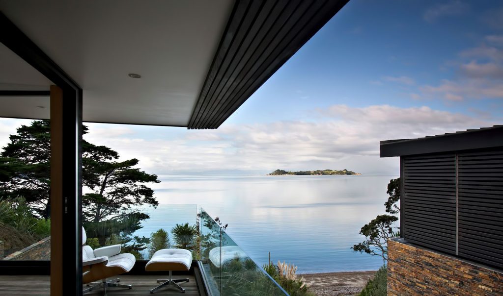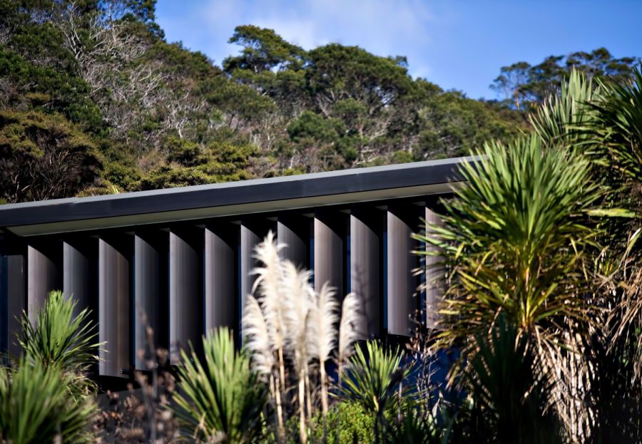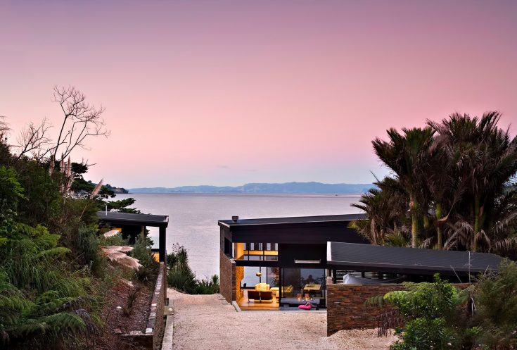 A stand of Nikau, an idyllic private bay and a building platform defined by ridges on either side set the architectural program for the design of this luxury family beach house on Waiheke Island, Auckland, New Zealand. The concept evolved from the idea of a family vacation home with plenty of space between the functional nodes of the residence utilizing physical separation to the guesthouse as well as a garage.