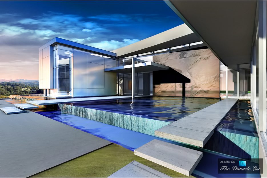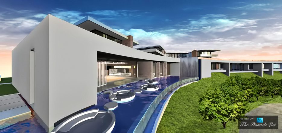 Expected to take at least 20 months to complete, the elaborate 4-acre (1.6-hectare) residential estate compound will include a 74,000 sq. ft. (6,900 m2) main residence with three additional smaller homes with a total combined floor-space that will exceed 100,000 sq. ft. Built to palatial proportions, the uber-luxury residence will feature almost every amenity available in the world, according to Niami, including a show-stopping 180-foot cascading infinity pool with sweeping panoramic views and that is only one of four swimming pools planned for the property.