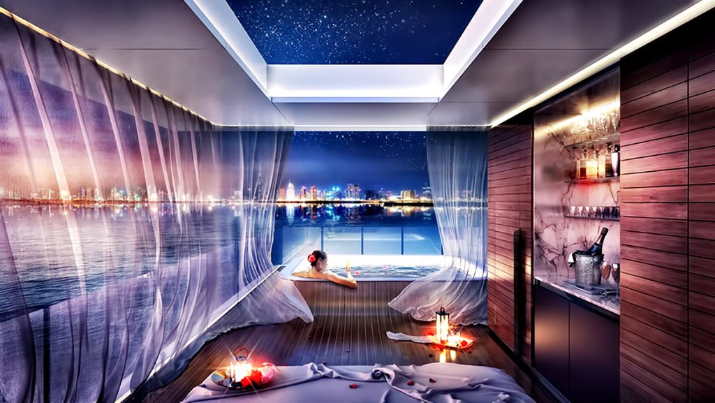 Prices have yet to be released, but it’s a sure bet that these exclusive floating retreats will offer a lucrative return on investment as holiday rentals in a region like Dubai, where 5-star hotel resorts are the norm.