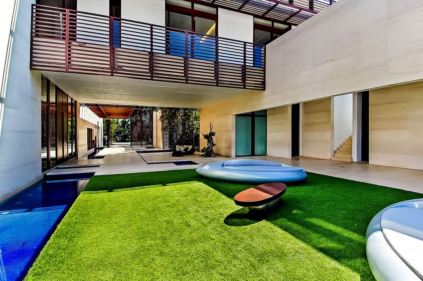 Designed by acclaimed Miami Architect Rene Gonzalez, the extravagant residence was created in a conceptually modern style comprising five separate floating pavilions interconnected by stone walkways, garden walls and water features. Built by Shlomi Alexander of Bal Bay Development with his partner, renowned Miami Beach developer Felix Cohen, the internationally recognized residence was built as a piece of art with the inspiration of Miami’s internationally famous Art Basil Show.