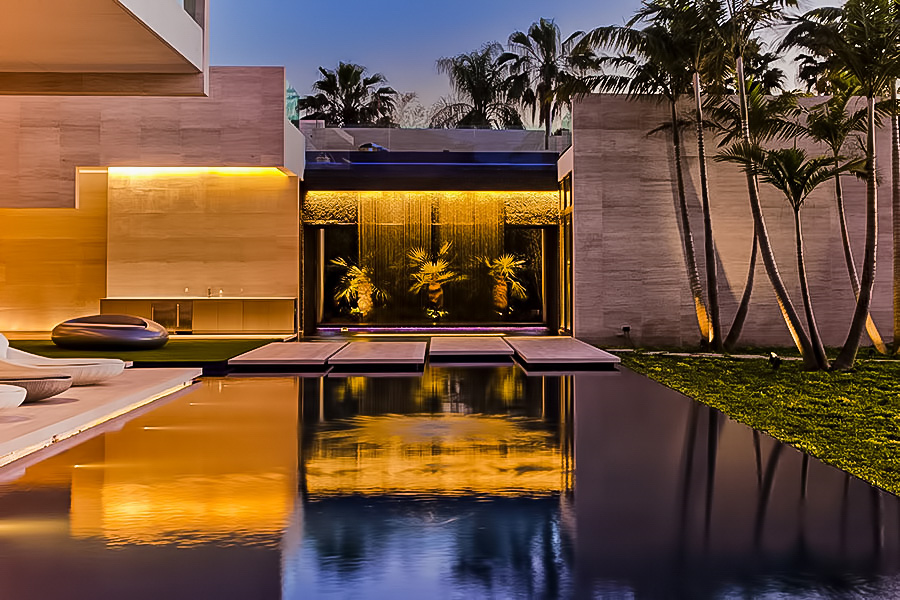 Walking through the estate is a zen-like experience with gardens and waterfalls that emphasize the continuity between the stunning architecture indoors and the natural beauty outdoors. The structure of the estate showcases the intimate relationship between water, land, and sky, creating a synthesis of emotion invigorated by the awe-inspiring views. A unique trophy estate like no other in existence today, the residence incorporates water as a fundamental theme. Not only does it surround the home, it meanders throughout the living areas forming reflection pools, relaxing melodious rivulets, and stunning waterfalls.