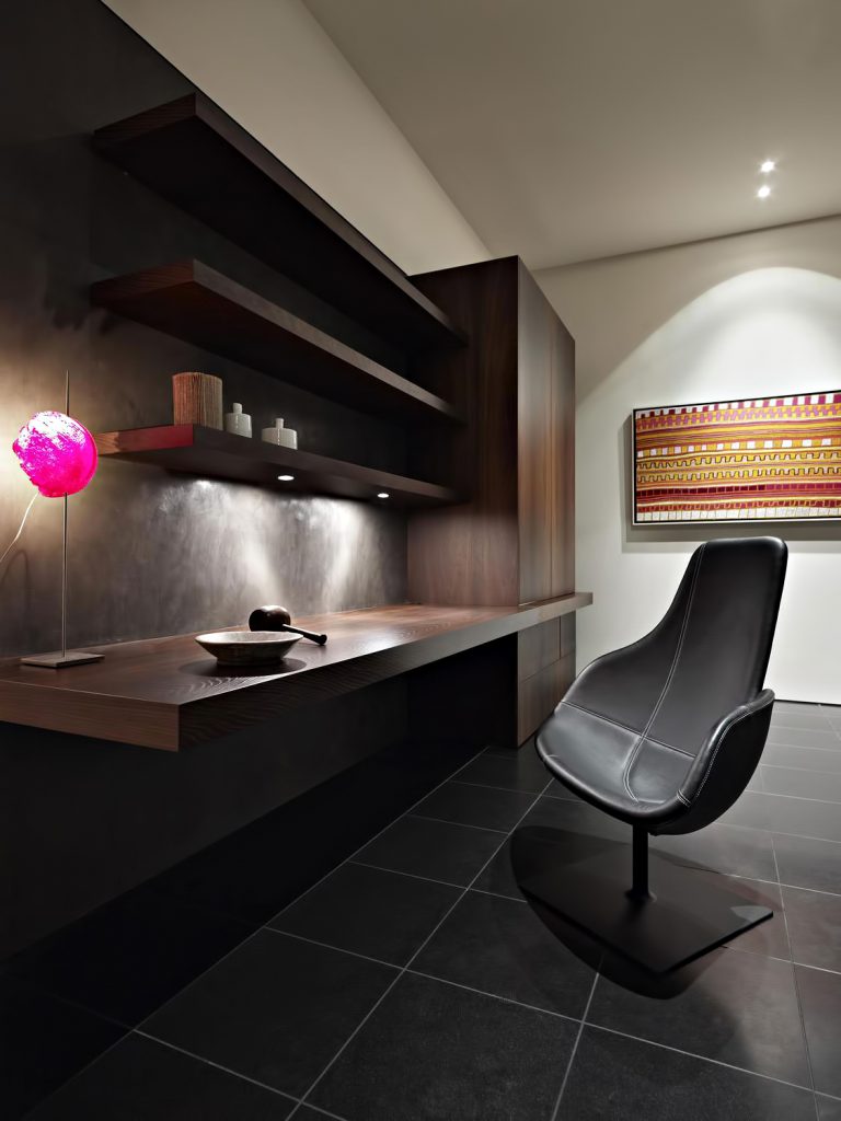 The residence was architected with a crisp inner-city modern structure that creates the residential aesthetic of an opulent urban cathedral with cavernous living spaces defined with contrasts of dark and light, sleek lines, and bright surfaces.