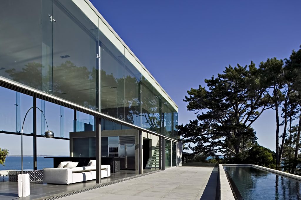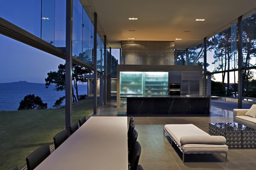 One of the most exclusive properties in Torbay, a seaside suburb of Auckland, New Zealand, this 5,920 sq. ft. luxury residence is an architectural tour de force of open-air minimalistic structural design. Fittingly set upon a seaside cliff, the home enjoys breathtakingly stunning panoramic views overlooking Rangitoto Island and onto the Hauraki Gulf.