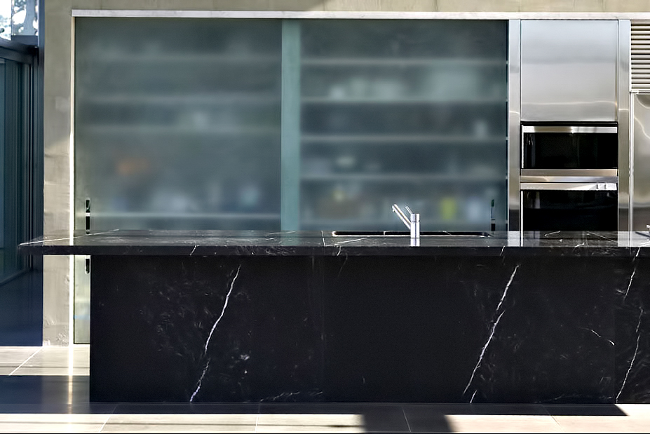 Simple in execution, but complex in aesthetics, the towering sliding glass walls of the residence allow the interior volume to be open to the exterior, encapsulating the natural elements of the surroundings with a sleek minimalism of the design that does nothing to detract from the appreciation of the stunning views.