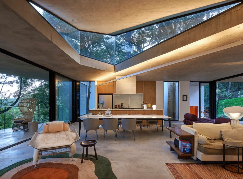 Introducing a true architectural masterpiece, the Açucena House, a sanctuary nestled within the verdant embrace of the Atlantic Rainforest in Brazil. Enveloped by towering leafy giants, vibrant foliage, and teeming with indigenous avian and wildlife, this stunning residence harmoniously merges with its untamed surroundings. Poised on the undulating slopes of Nova Lima in Minas Gerais, Açucena House is a testament to architectural ingenuity in the face of challenging topography.