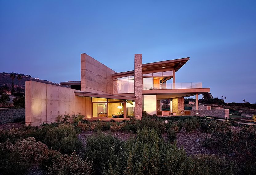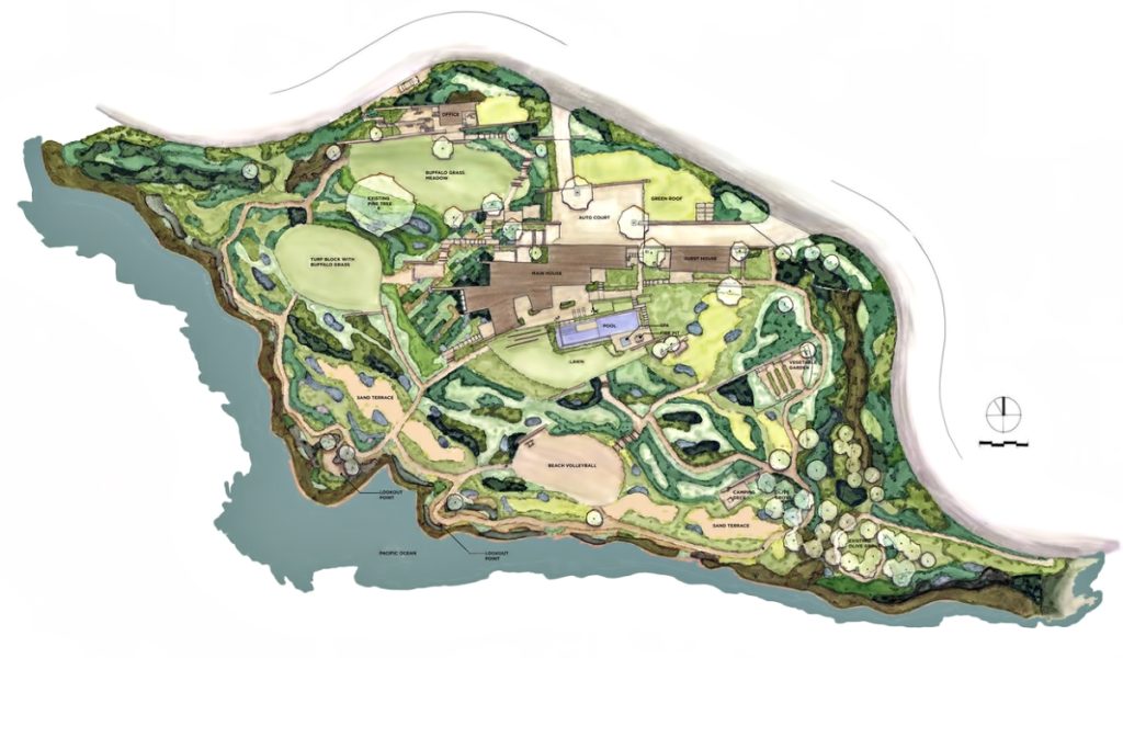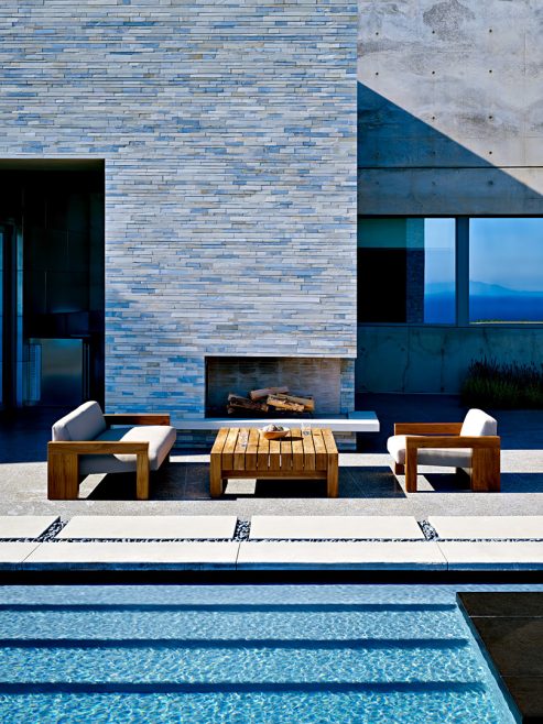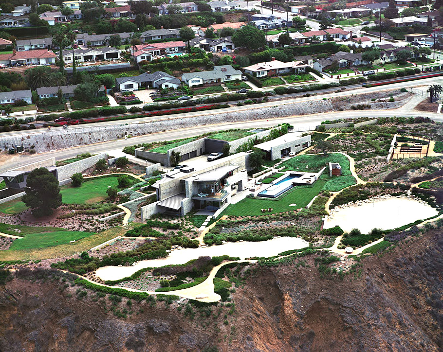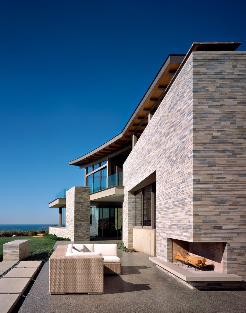 A landmark oceanfront estate on the California coastline, the Altamira residence was architecturally inspired by the natural elements and topography of its 13.2-acre site overlooking the Pacific Ocean. Designed to complement casual indoor/outdoor living, a modern and clean structural narrative encompasses four separate buildings on the property with the main house, study, guest house, and garage all constructed with steel beams, stone and concrete to create large voluminous realms broadly segregated with small intimate spaces.
