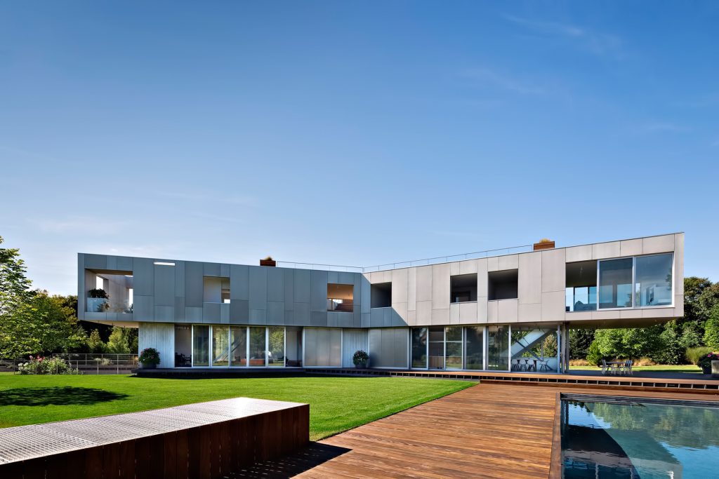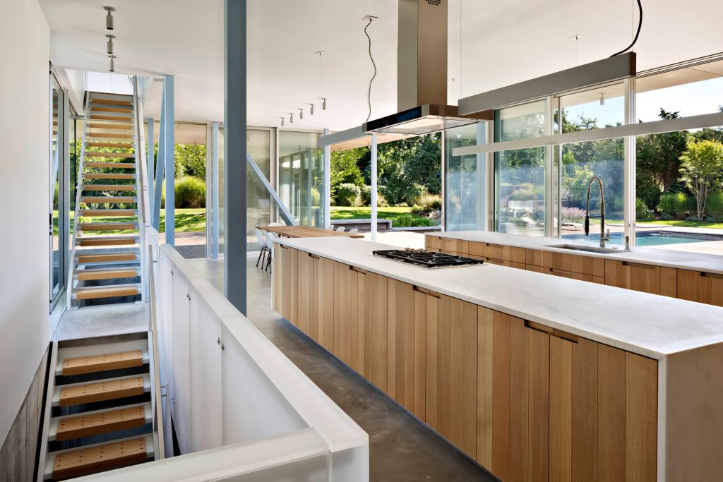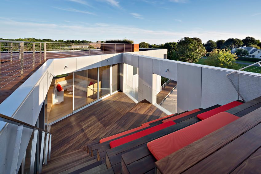Reconfiguring the typical Hamptons Beach House, this modern rendition takes a triple-spoke organization that accommodates both entertaining and separating spaces. This is a luxury residence where a range of activities can occur, and visual connections are myriad. Strong connections to the outdoors, maximization of natural ventilation and minimization of air conditioning, lots of light and the ability to have areas of intimacy within the open house were part and parcel of the charge.