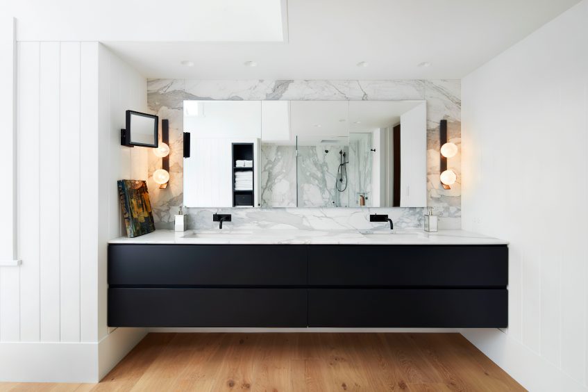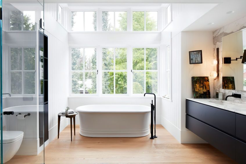 carefully designed a full modern renovation for this spectacular Balaclava Modern Farmhouse, complete with contemporary amenities and features. Murray-Sims Construction was tasked with completely stripping the original finishes both inside and out and converted the home to a modern design. The result is a sensational and fresh take on modern urban farmhouse luxury living with a neutral, but dramatic, and simple, but sophisticated residence.