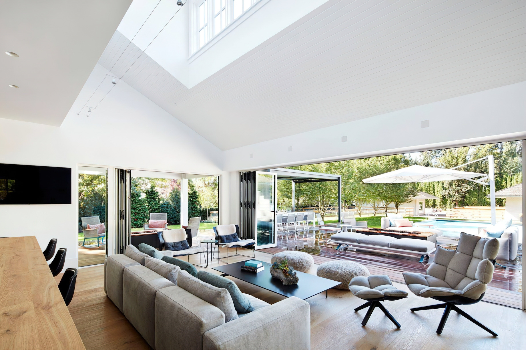 Let in the light; As we know, Vancouver has more than a few grey days, and because of this, Hodgson Design Associates always ensure their local designs allow for a plentiful amount of natural light. A great example of this is at Balaclava Modern Farmhouse where expansive folding patio doors and an overarching skylight provide a seamless opportunity for light to enter and enhance the room.