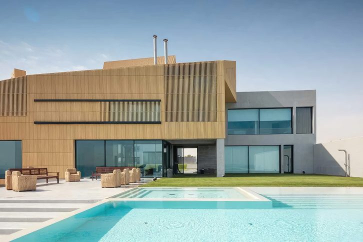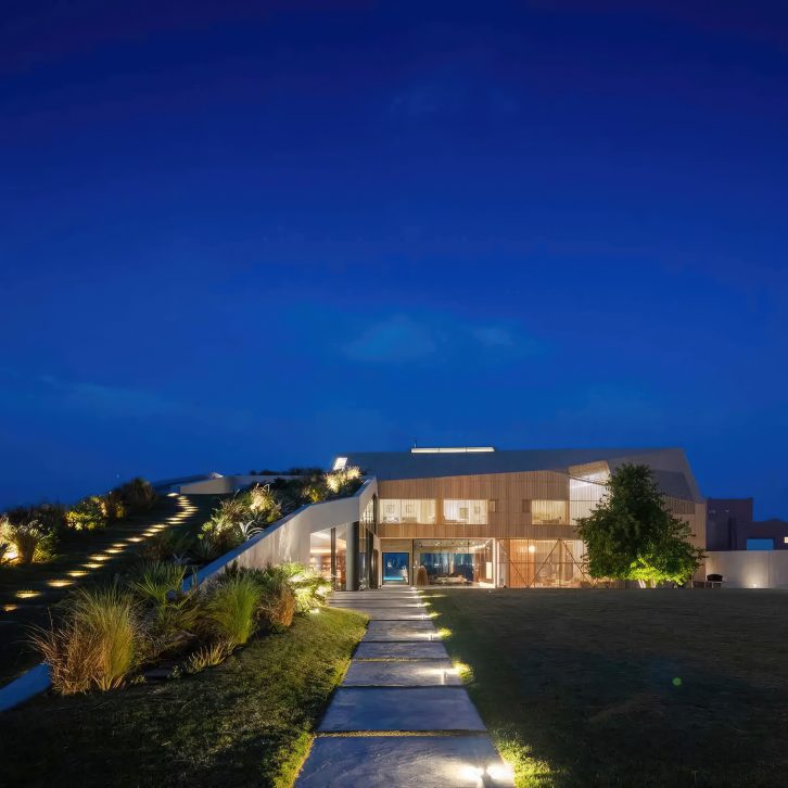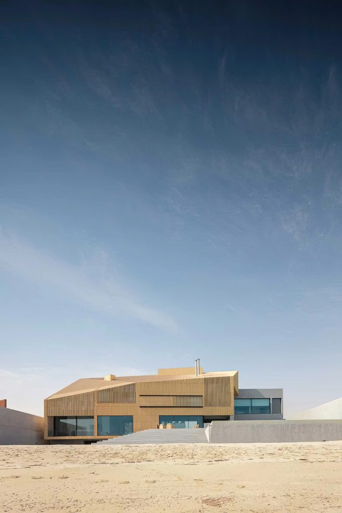 The residence is designed to integrate seamlessly with its surroundings, featuring a minimally landscaped central courtyard and various structures connected by a concrete enclosure with a rooftop garden. The thoughtful design, including a 20-meter by 4-meter-high basement parking garage for cars and boats, staff living quarters, and a home theater, ensures that the Baraka Seaside Residence maintains its homeliness despite its vast size. This architectural gem, with its warm material palette and sensitive landscaping, offers a harmonious blend of modern design and traditional inspiration, making it a standout in contemporary architecture.