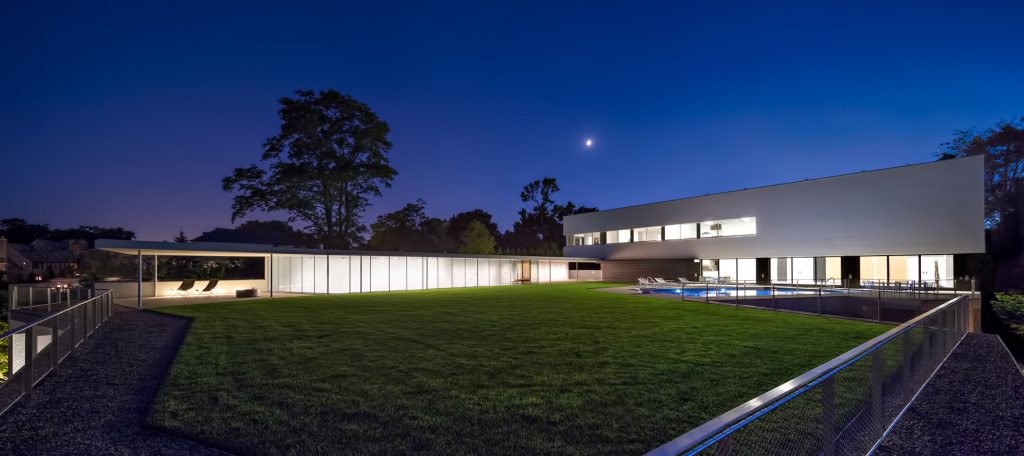 Designed to encapsulate the atmosphere of modern contemporary West Coast beachside luxury living, this elegantly conceived residence is located in the northern suburbs of Chicago. Sited on the shore of Lake Michigan, the exceptionally conceived residence is composed of a mostly buried underground structure creating a synergetic relationship with the landscape with the monumental house weaving its way down to the water.