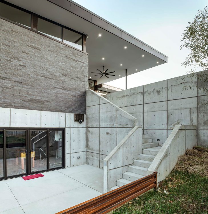 The Belk Residence is a remarkable fusion of architecture and nature nestled amidst the rolling hills east of Springfield, Missouri, overlooking the tranquil James River. Inspired by the distinct Ozark landscape characterized by its rolling Hills and Hollows, as well as expanses of field, prairie and lush forests, the residence harmoniously integrates with its surroundings. Positioned at the intersection of its natural surroundings, The Threshold House, as it is aptly named, embodies a poetic design vision, inviting inhabitants to transcend the conventional boundaries between interior and exterior, field and forest, hill and hollow.