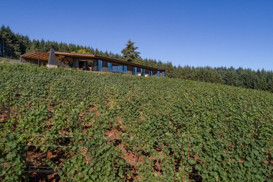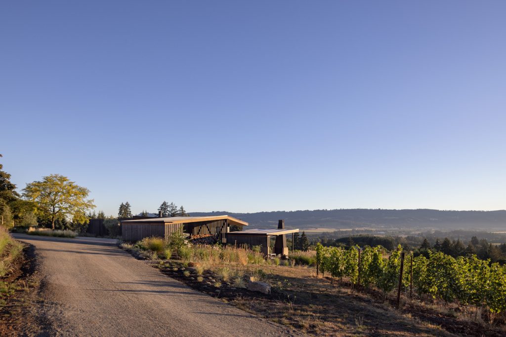 Set within the picturesque hills of the renowned Willamette Valley wine region in Oregon, Big Fir Vineyard stands as a testament to the seamless integration of architecture and nature. Crafted with meticulous attention to the topography and agricultural essence of its site, this single-family residence harmoniously blends into a newly planted vineyard. The design, inspired by both the slope of the land and the linear grace of the grapevines, showcases a thoughtful alignment that mirrors the rows at a 45-degree angle. This intentional orientation, following the optimal north-to-south sun exposure for vine cultivation, not only ensures the vineyard’s vitality but also frames varied, breathtaking views from within the home.
