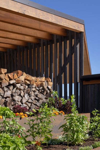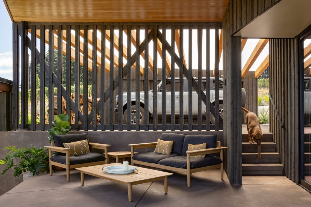 Beyond its aesthetic allure, Big Fir Vineyard demonstrates a keen understanding of environmental responsiveness. Clerestory windows and translucent panels strategically filter sunlight, preserving the brightness of the living spaces while mitigating the intensity of the summer sun. The exterior, clad in board and batten cedar siding, pays homage to the agrarian context while providing privacy where needed. Thoughtfully chosen materials, from tinted concrete floors mirroring the local Jory soil to cedar beams and dark soapstone countertops echoing the site’s colors, underscore the commitment to a design-driven yet contextually rooted home. In essence, Big Fir Vineyard transcends the conventional, offering a luxurious, rustic retreat where the boundary between indoor and outdoor dissolves into the panoramic embrace of the surrounding vineyard landscape.