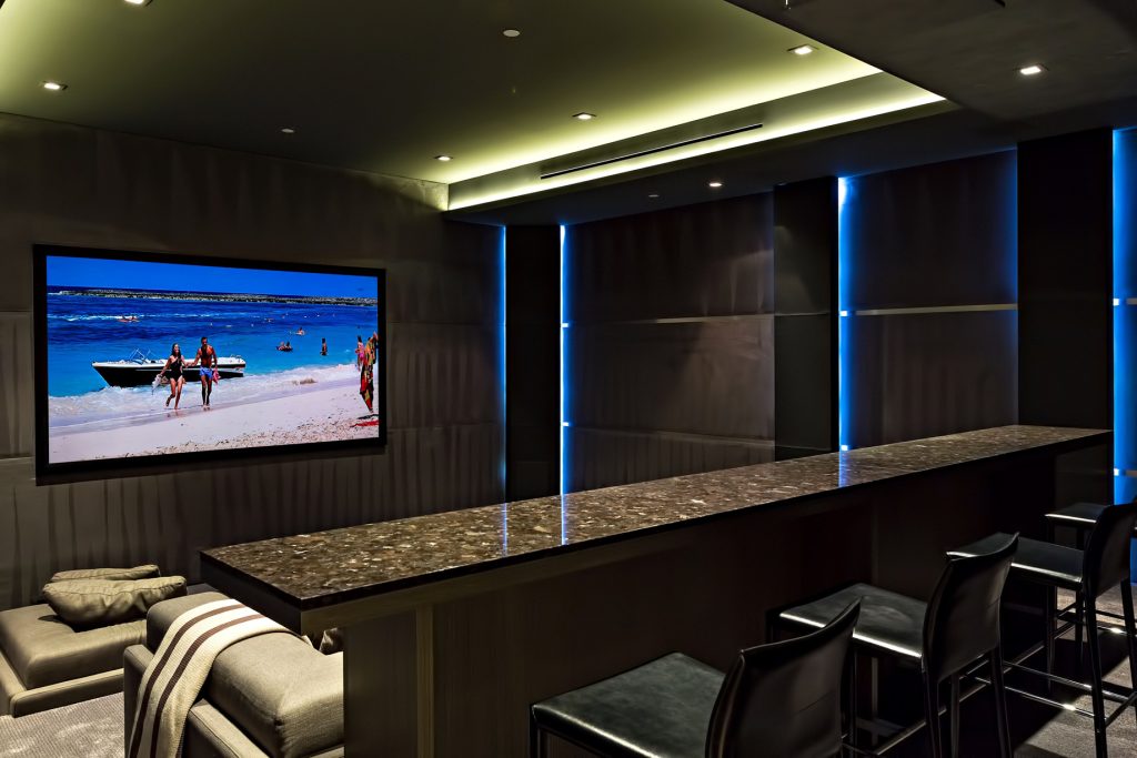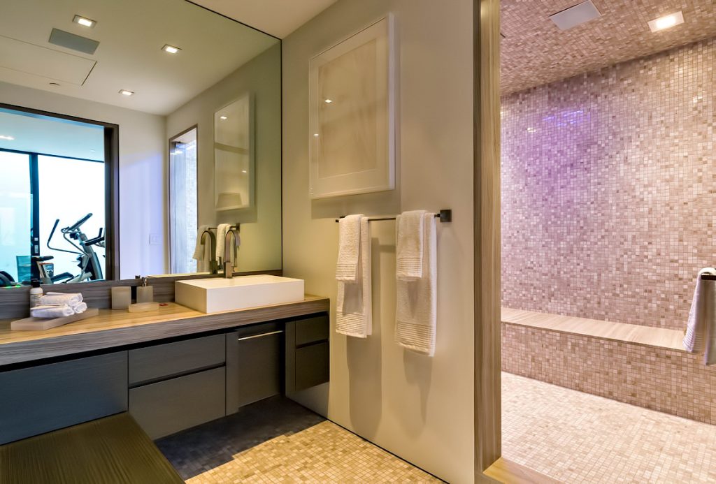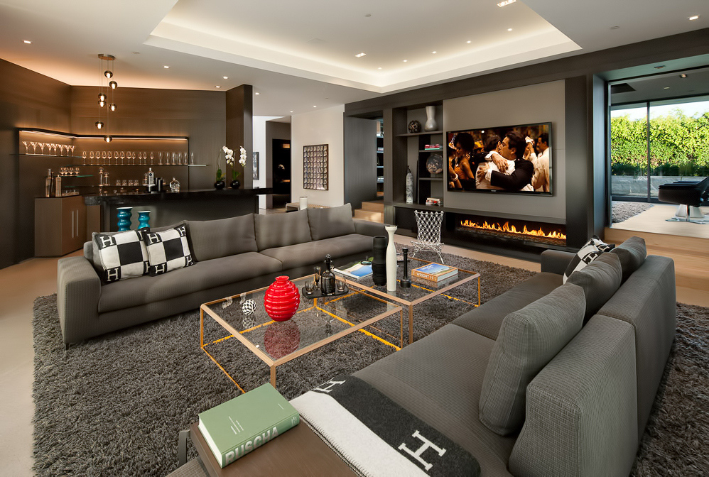 Developed over a 4-year period by Sean Sassounian, no expense was spared to create this modern masterpiece. With 280ยฐ views from downtown to the ocean and everything in between, this stunning home is an entertainerโs dream that features the finest stone, marble, wood, & state of the art Crestron smart home technology. Complete with a gym, spa, theater, and 2,000 sq. ft. master suite, wine cellar, oversized subterranean garage to store exotic cars, and is offered fully furnished with world-class dรฉcor by IN-EX showroom in Los Angeles. Walls of glass disappear to open to a large grassy lawn, full outdoor kitchen, fire pits, & saltwater infinity pool against the sparkling LA skyline. The main level offers a spacious Grey and White Lacquer DADA kitchen that flows to an attached sitting area with media room, facing out to the pool and lush hills. A massive marble island in the kitchen complements the integrated Miele appliances, and a hidden door leads to an entire catering kitchen behind the main kitchen.