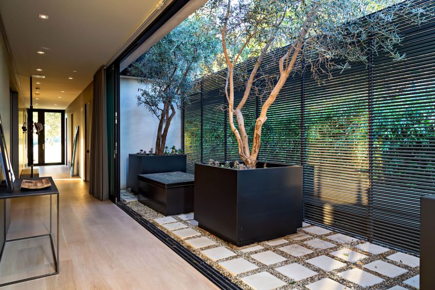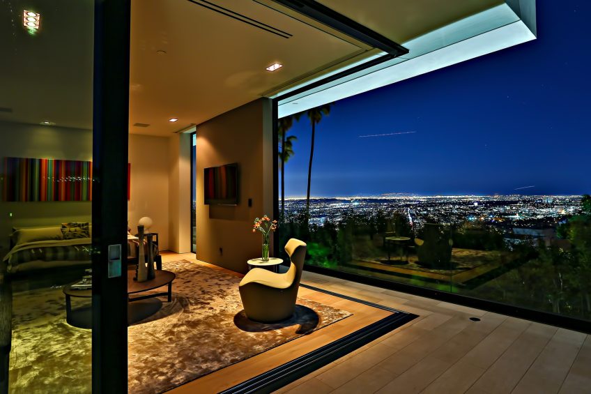 A close collaboration with top L.A. design firm In-Ex, focused intently on the well-curated luxury interior befitting a top-tier lifestyle. An impressive list of European amenities includes furniture by Acerbis, Arco, Classicon, Glas Italia, Matteo Grassi and Walter Knoll; custom lighting by Foscarni; closets by Molteni; outdoor furniture by Paola Lenti, Kettal and Roda; and laundry room, kitchen and pantry by DADA. In addition, the art in the house is specially curated by the Michael Kohn Gallery ยญโ with notable and emerging artists, many from California. The master suite boasts a huge custom master bath with views overlooking the back pool and canyon โ dual rain-heads; deep soaking tub & spa; a mesmerizing hall of mirrors effect. Master bedroom faces west for incredible sunsets and afternoon light. Enjoy a private balcony overlooking pool and an attached office and wet bar. Everything in this home was composed to fashioned to encapsulate the ultimate vision of L.A. luxury living in a serene environment that is your own private island of luxury over the Sunset Strip.