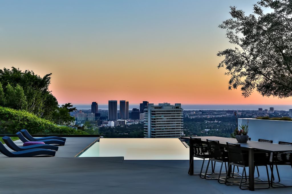 This stunning modern contemporary luxury residence with sweeping views over the entire L.A. basin is perched on a premier lot in the celebrity studded โBird Streetsโ overlooking the sunset strip on Oriole Way. This estate was architected to deliver the ultimate California lifestyle with meticulously clean lines and wide-open spaces throughout. Walls of glass and Fleetwood pocket doors throughout seamlessly fuse the interior and exterior living spaces to create a serene and sexy environment of exclusive luxury befitting its location at the 50-yard line of Beverly Hills & West Hollywood, just minutes from Rodeo Drive.