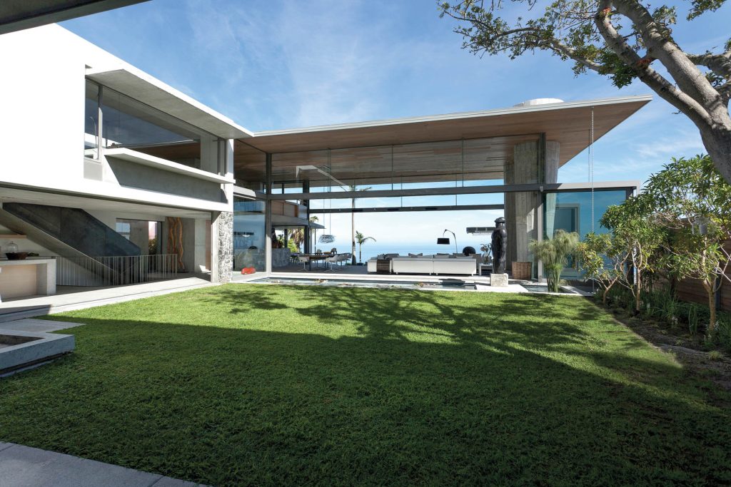 Perched on the slopes of Lions Head, with sweeping views of the Atlantic coastline, stands a contemporary residence that combines tactile natural finishes with bold, simple forms. This architectural masterpiece offers a fresh interpretation of Cape vernacular design. Stefan Antoni, the director, and partner at SAOTA, explains that the goal was to create a home that not only showcased the splendor of the Atlantic Seaboard but also catered to the practical needs and complexities of family life. The result is a harmonious blend of massive open-plan spaces, double-volume areas, and carefully planned zoning.