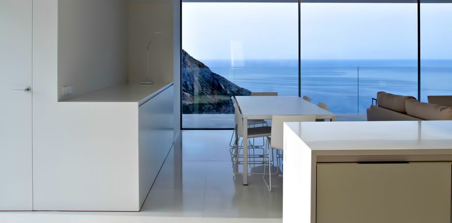This spectacularly daring cliff-edge luxury residence was constructed with a virtuous construct to create a house that appears to be floating on air with the ability to walk out onto the water below. More an abstract sculpture than a standard home, the evocative structure invites the sun and sea into its quiet three-dimensional spaces of solitude and splendour.