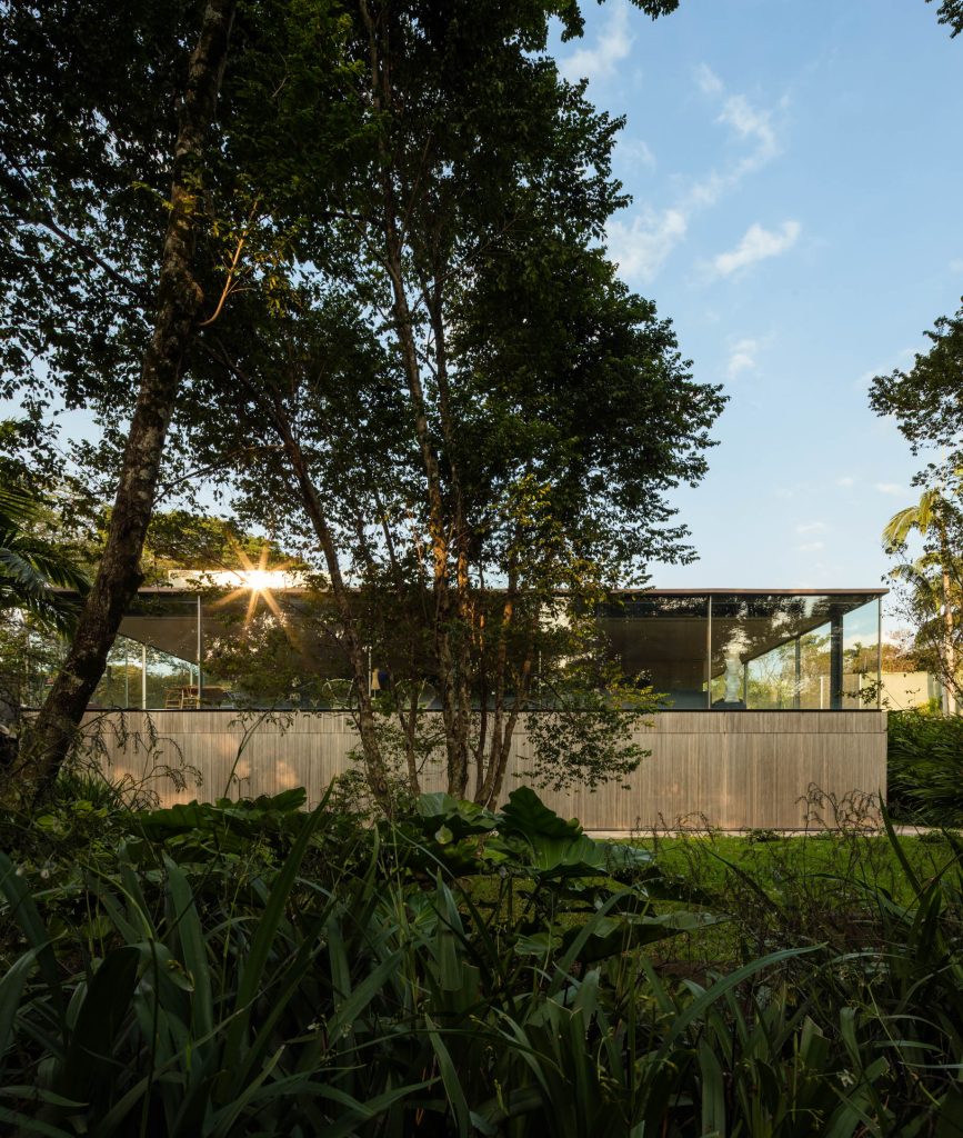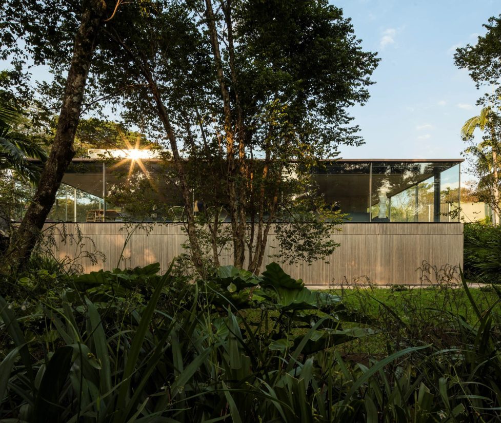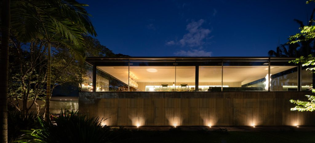 On the upper floor, the living room’s expansive sliding glass doors, measuring 3.70 x 2.80 meters, can be adjusted to accommodate climatic needs, maintaining a delicate balance between openness and security. The glass handrail ensures safety without disrupting the fluid internal-external connection. The kitchen, washroom, and vertical circulation elements complete the upper floor’s program, further emphasizing the design’s focus on fluid movement and visual continuity. Fio House is a modern architectural interpretation that thoughtfully integrates its natural surroundings, offering a unique living experience in São Paulo.