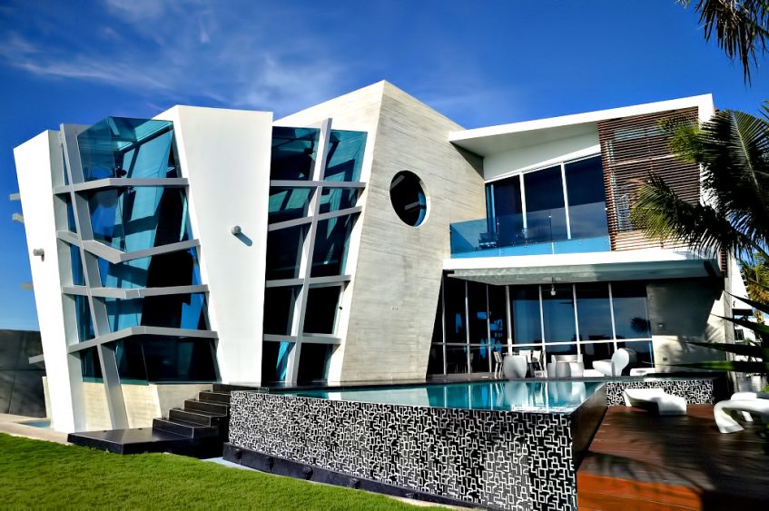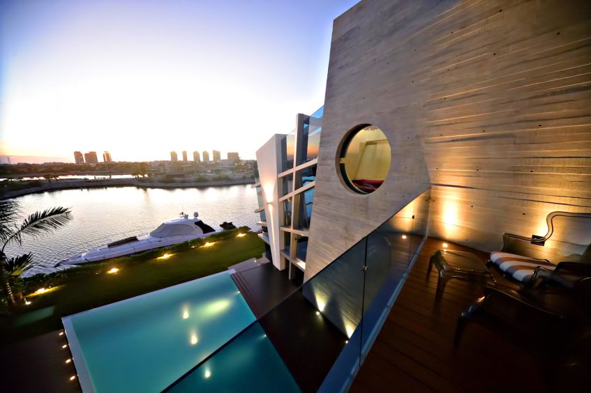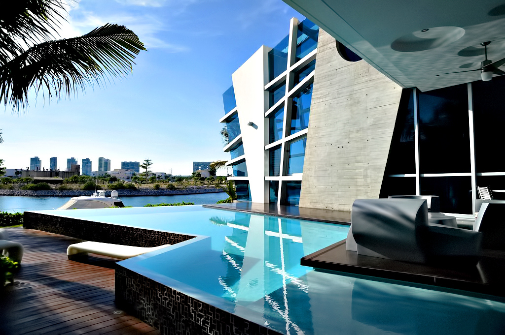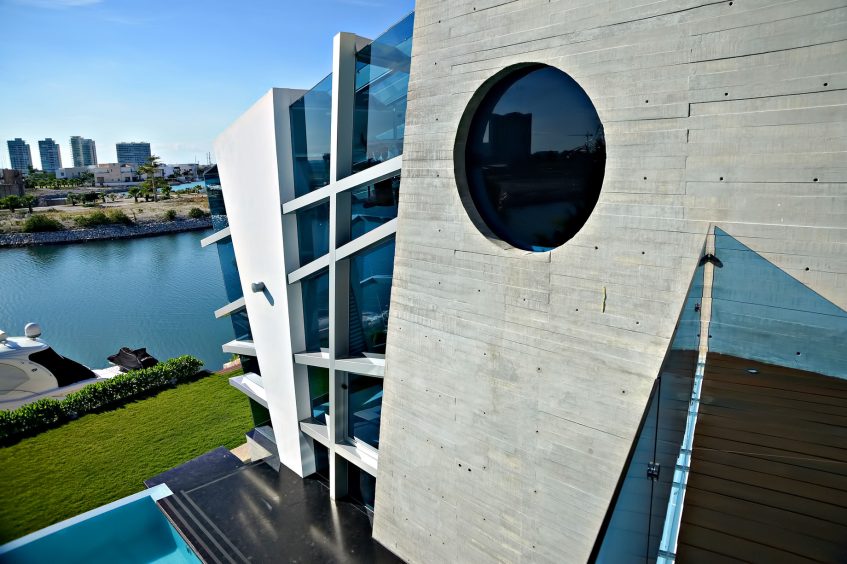 Created through a deconstructive approach to architecture, the design of Casa Gomez is organized to flow between indoor/outdoor spaces as if it were a single environment. Large oversize retractable windows emphasise the main canal views with the Cancun hotel zone visible in the distance.