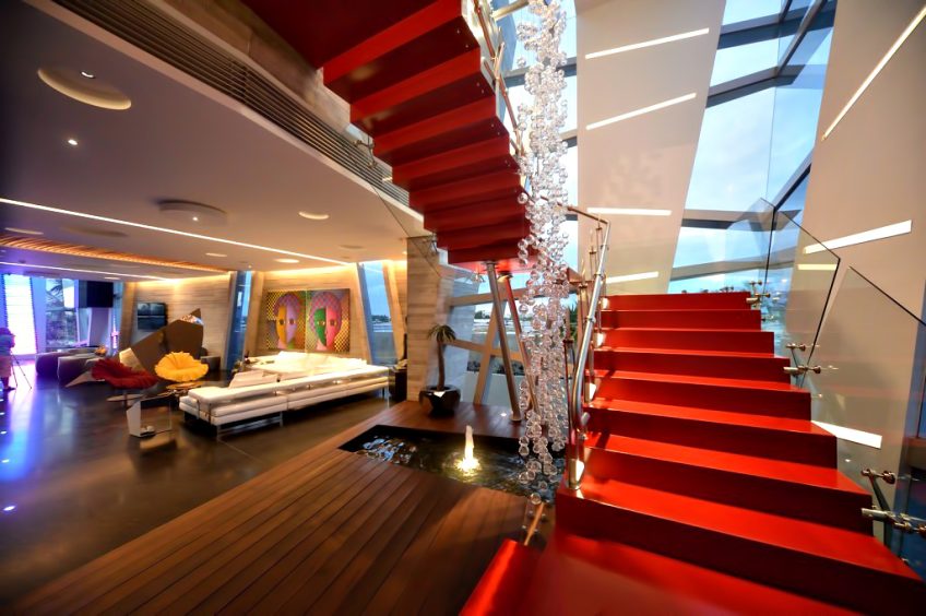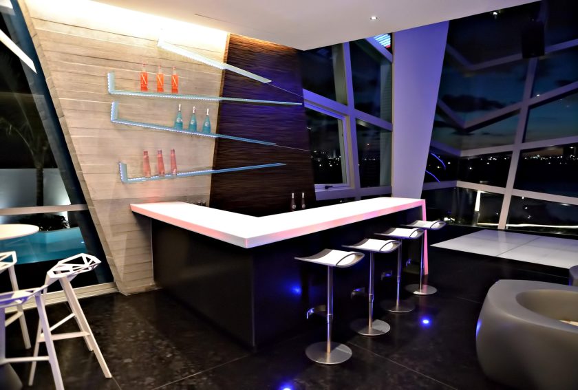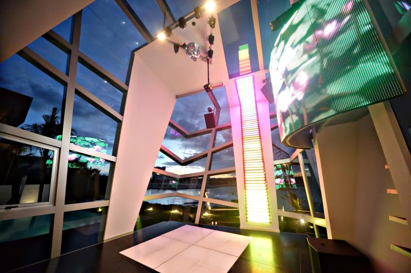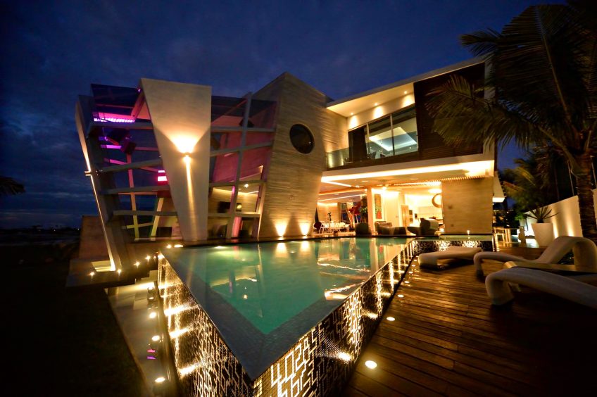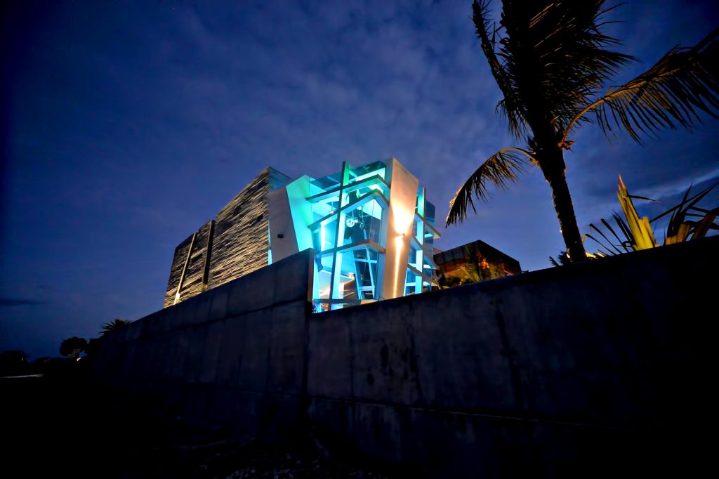 Casa Gomez is an ultra-modern residence located in the luxury-gated development of Puerto Cancun situated on a one-mile stretch of white sand ocean beach. The exclusive luxury residence includes bold jaw-dropping geometric architecture that includes the perfect dose of non-conformity with artistic and designer features such as neon and LED lighting that set an innovative expression of modern luxury with nuances of light.