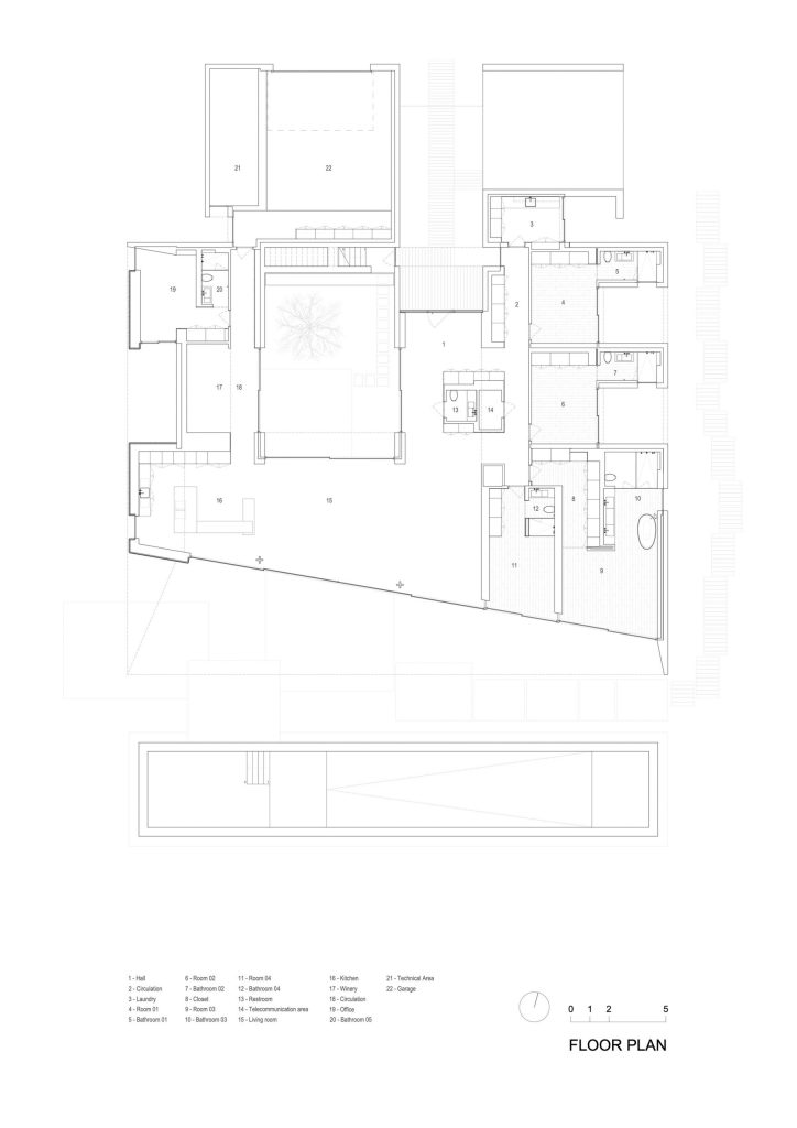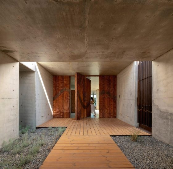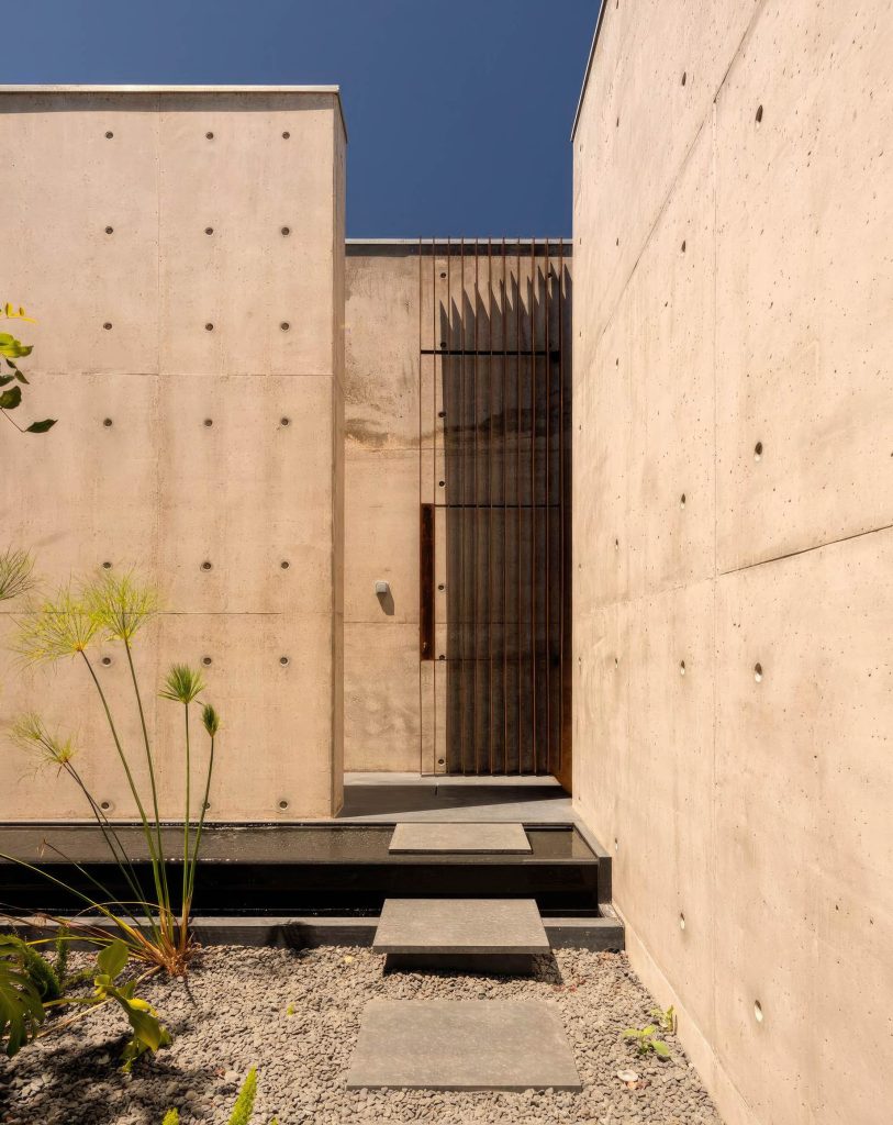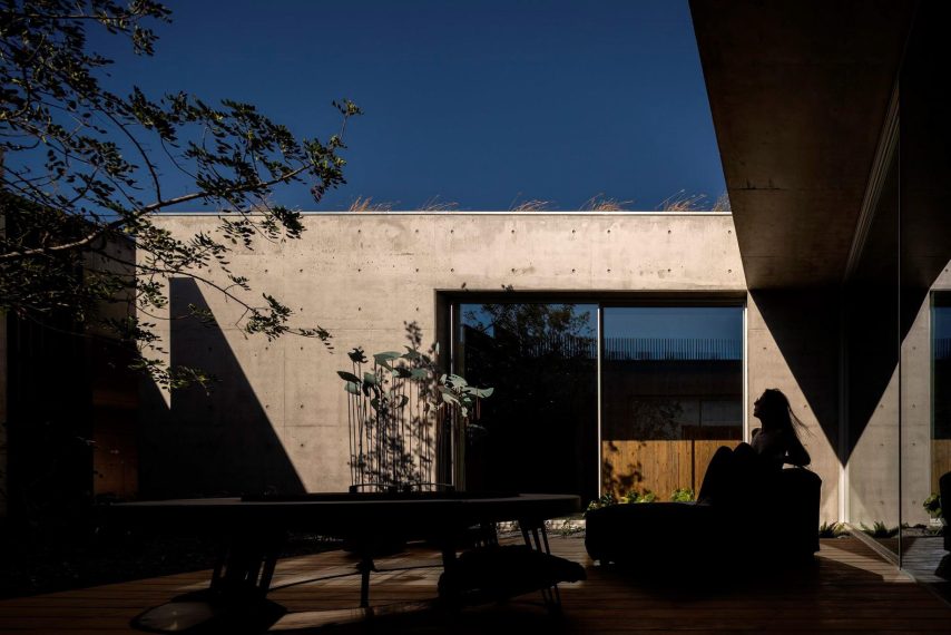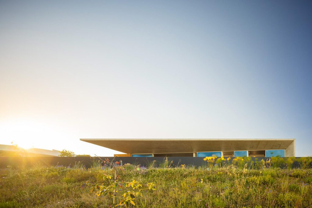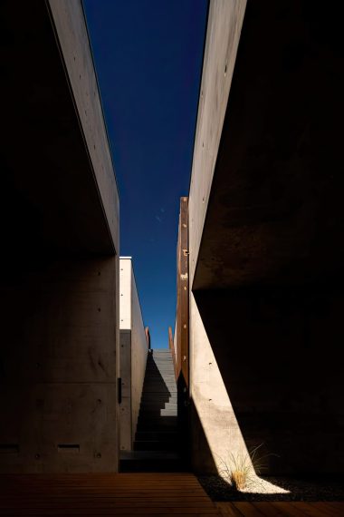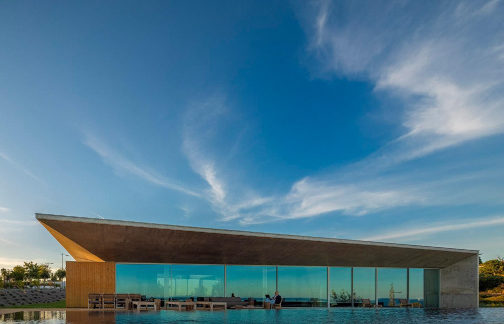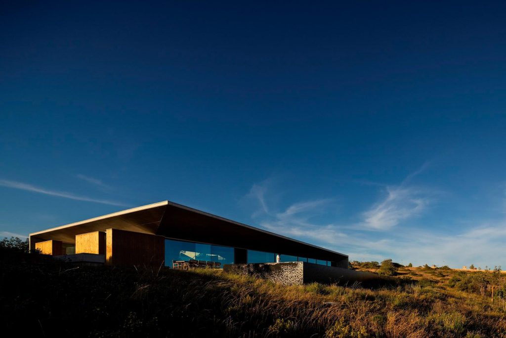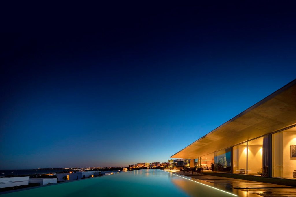 Libre House, by Mario Martins Atelier, was designed as a permanent residence, this single-story concrete home is organized around a central courtyard marked by a carob tree, with social spaces, kitchen and living, to the south and private bedrooms to the east. Its exposed concrete structure, raw and low maintenance by design, is punctuated by large, glazed surfaces that embrace sea views while remaining shielded from solar heat by a strikingly slim, cantilevered canopy. A long, linear swimming pool anchors the outdoor space, creating visual balance along the homeβs southern faΓ§ade.