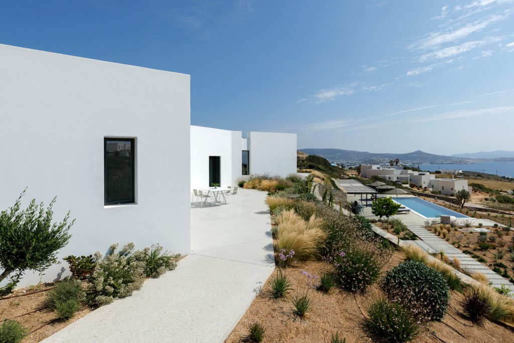Located in the scenic Krotiri area near Delioโs Sanctuary of Apollo on the Greek island of Paros, the Riza II Residence takes full advantage of the sloping terrain and panoramic views of the Parikia bay. The main residences, accompanied by a guest house, are strategically positioned to blend with the arid Cycladic landscape. Designed with a southwestern orientation, the homes boast sweeping sea views, while the white walls mimic the natural flow of the terrain. The distinct ribbon-like structure weaves through the property, forming a harmonious connection between indoor and outdoor living spaces. The jagged layout, shaped by the unique topography, ensures both privacy and an immersive experience with the surrounding environment.