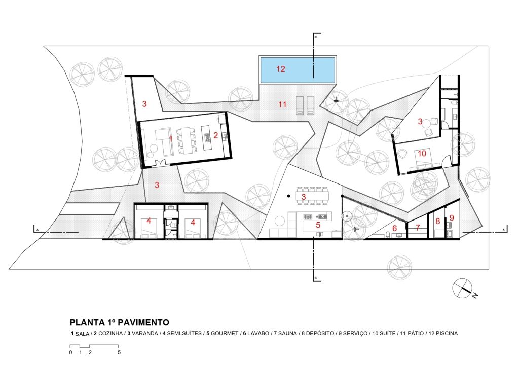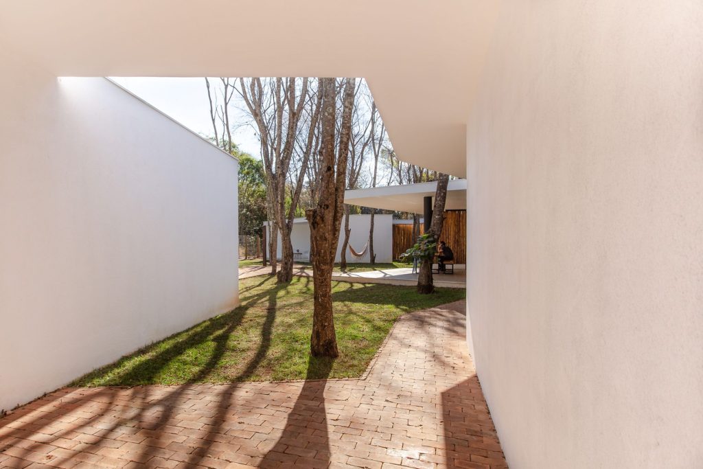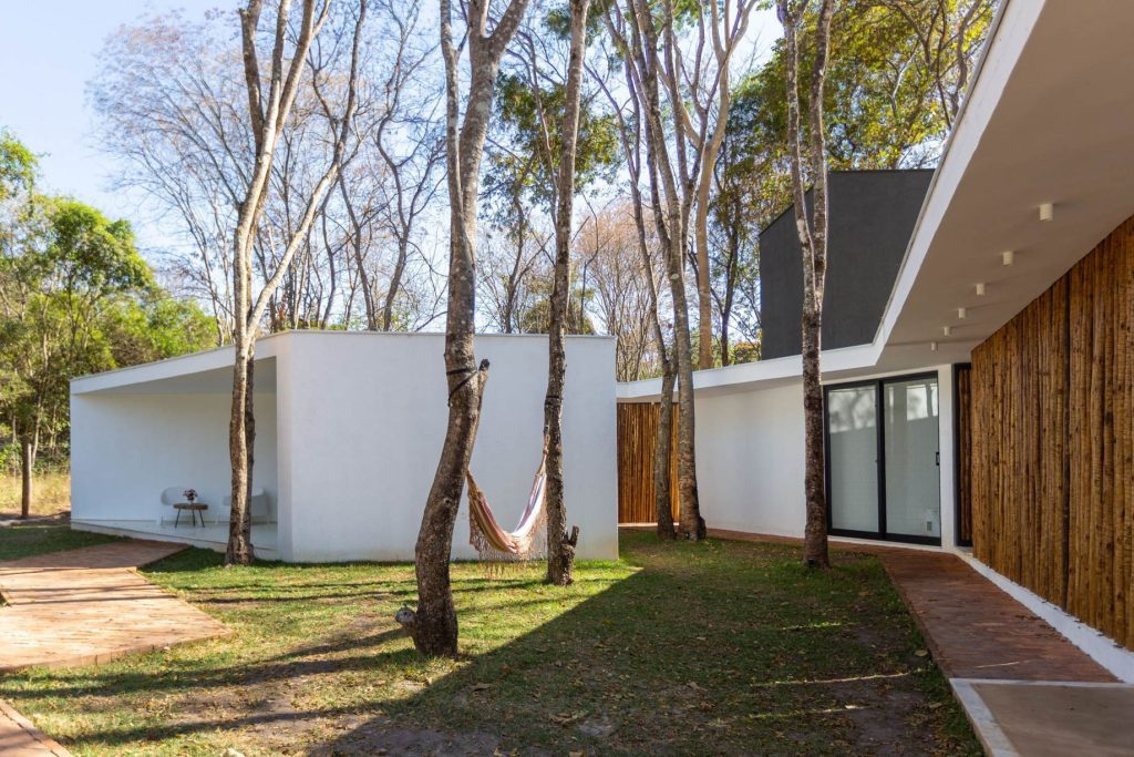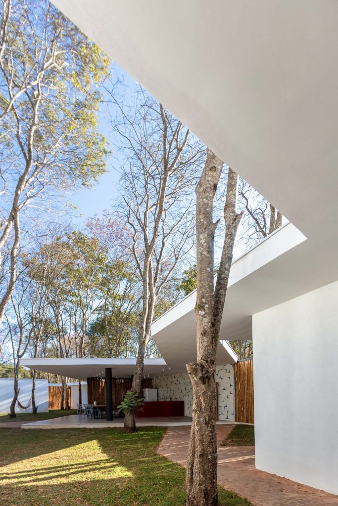 The Terra House is a striking testament to the harmonious fusion of architecture and nature nestled amidst the enchanting Serra do Cipó region in Brazil. Approximately 120km from Belo Horizonte, this residence stands as a testament to the profound connection between its inhabitants and the earth and soil beneath their feet. Its unconventional contours gracefully dance around the surrounding trees, embracing the heart of the land with an embrace that reinforces their intrinsic relationship. The plot’s nearly level topography, adorned with resilient mastic trees that transition from leafy canopies in summer to a skeletal elegance in winter, is framed on one side by an expansive protected forest, creating a sanctuary of natural splendor.