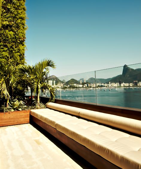 Casa Urca is a spectacular three-story, 7,180 sq. ft. penthouse with some of Brazil’s most breathtaking natural views. Considered one of the finest examples of luxury apartment living in Rio de Janeiro, each of the four large bedrooms and three outdoor terraces boasts stunning views. At the same time, the exclusive top-floor master suite has dual aspect city and mountain views, as well as an outdoor shower and hot tub, all in the shadow of Sugarloaf Mountain.