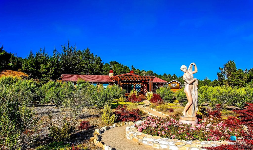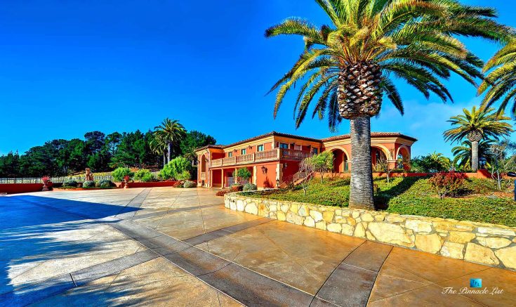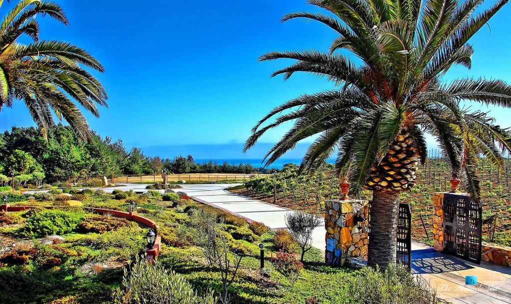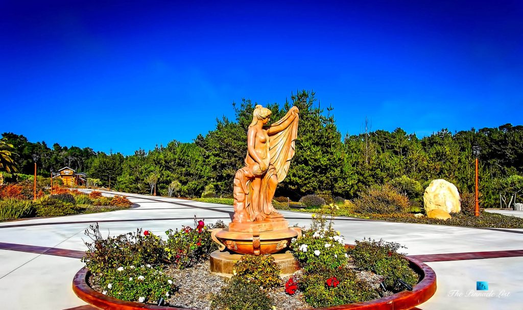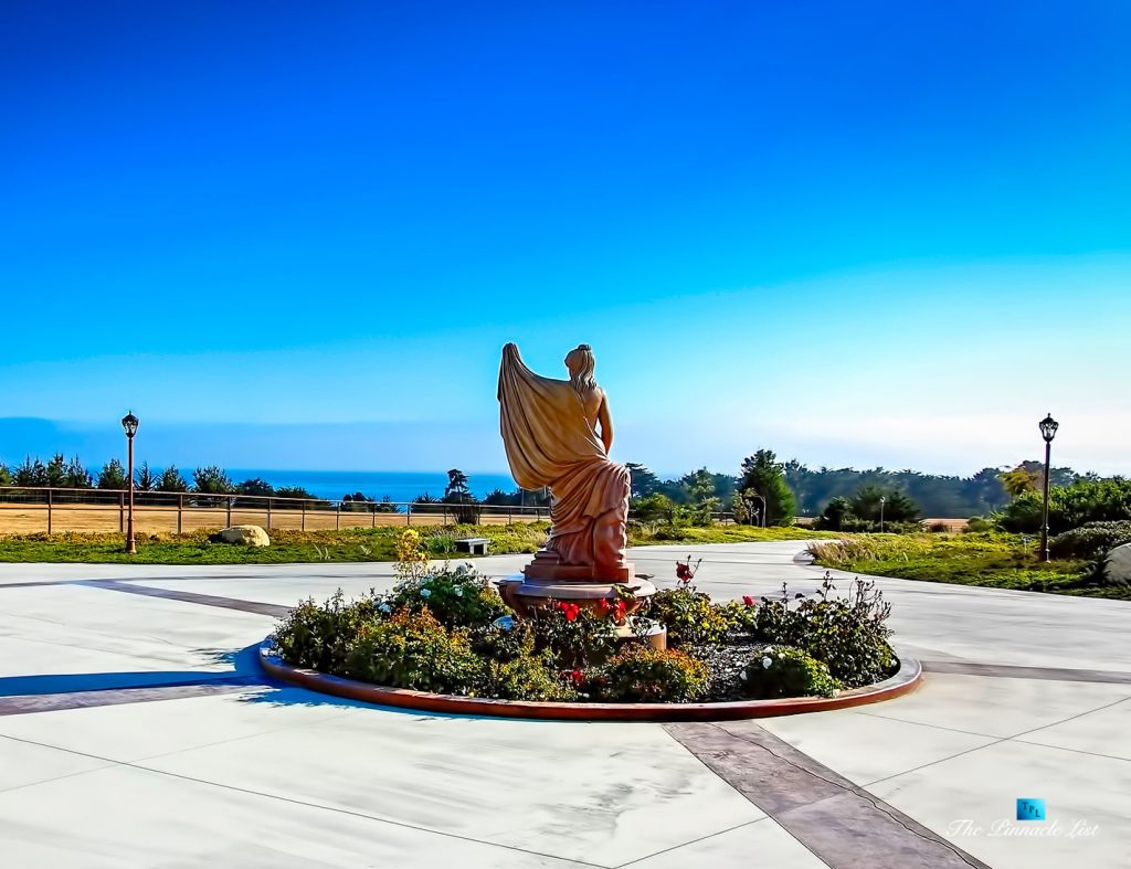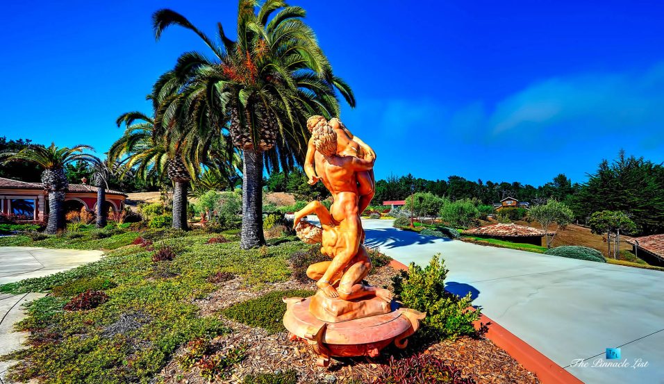 The property’s 80 acres encompass a pinot noir vineyard of 6,200 vines, sculptured gardens with 30 ft. tall Canary Island palms, olive groves, fenced pasture, and a rare Monterey pine forest, one of only three such stands in the world, along with a National Marine Sanctuary offshore that protects the abundant sea life and ocean habitat.