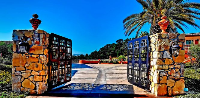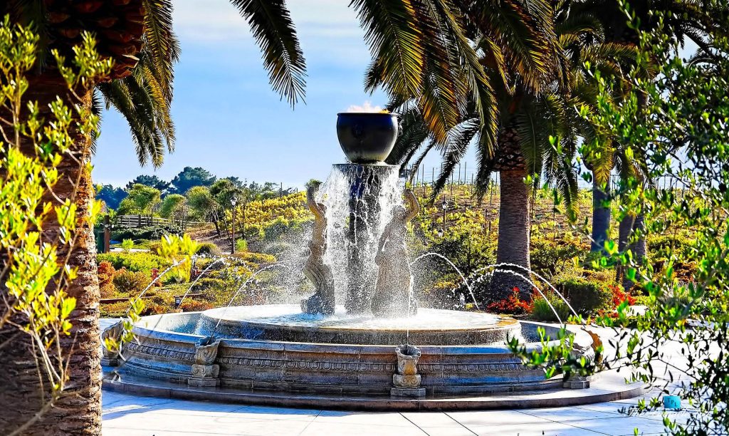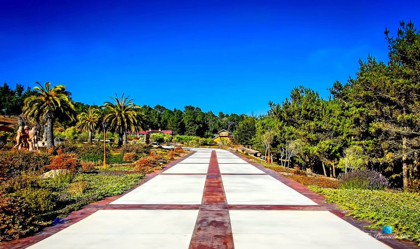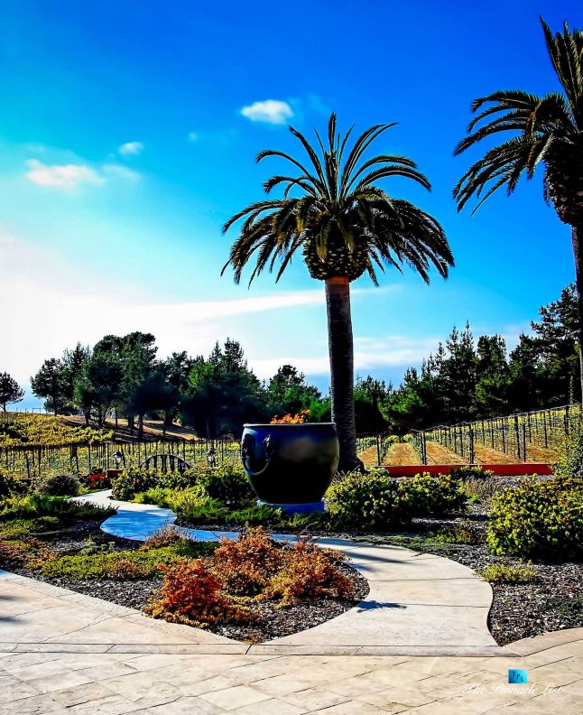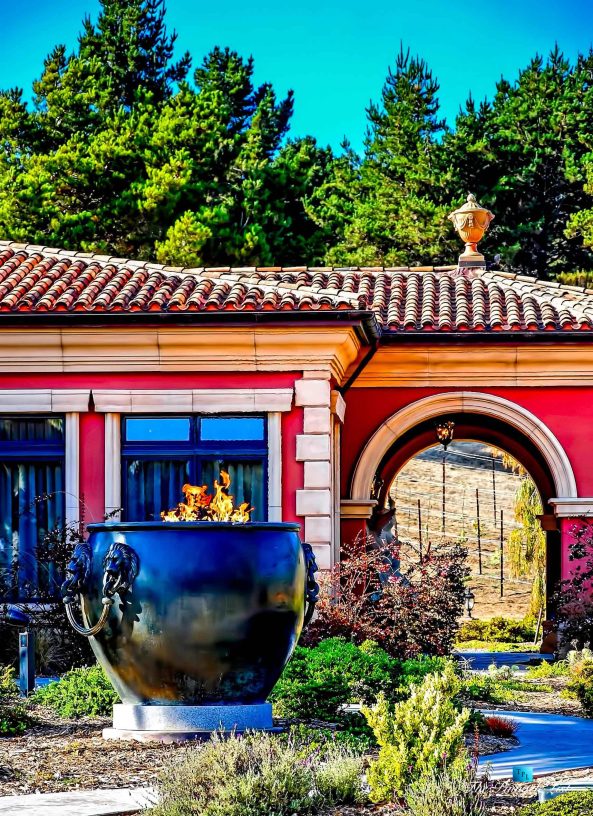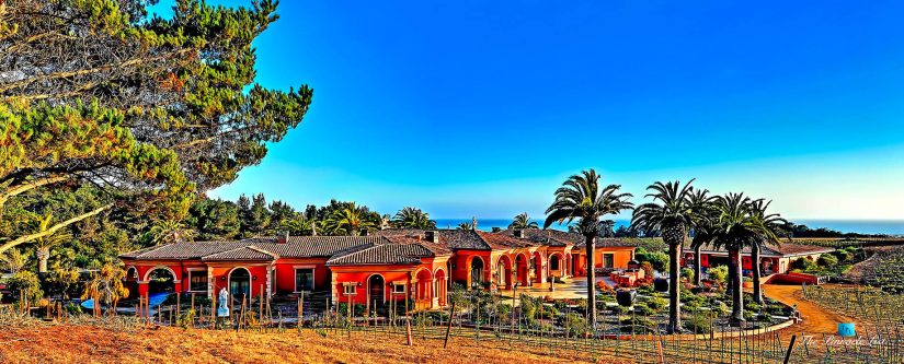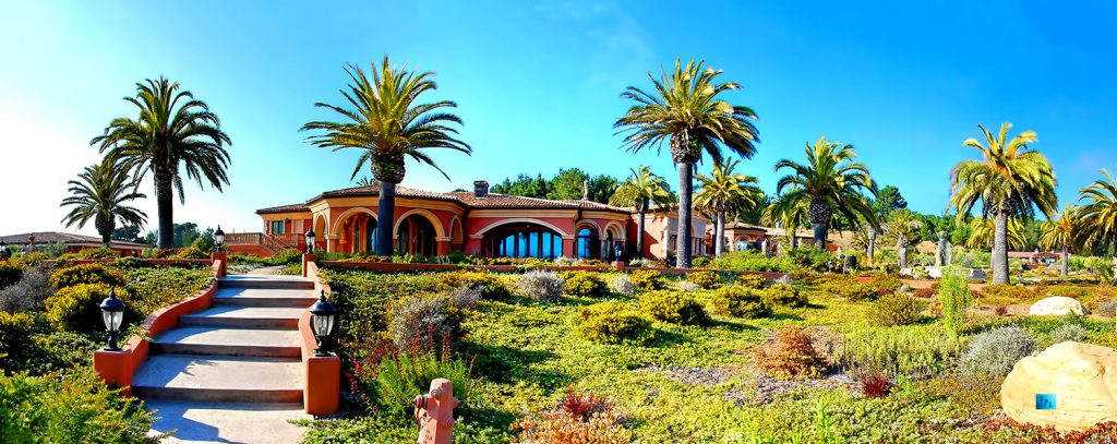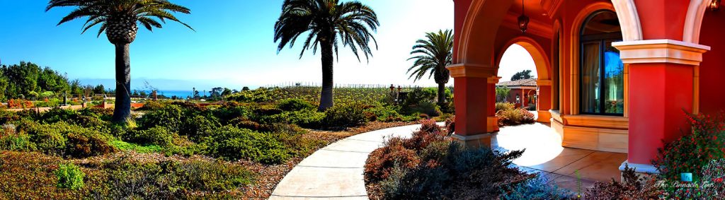 The property’s 80 acres encompass a pinot noir vineyard of 6,200 vines, sculptured gardens with 30 ft. tall Canary Island palms, olive groves, fenced pasture, and a rare Monterey pine forest, one of only three such stands in the world, along with a National Marine Sanctuary offshore that protects the abundant sea life and ocean habitat.