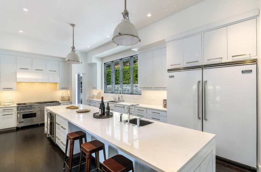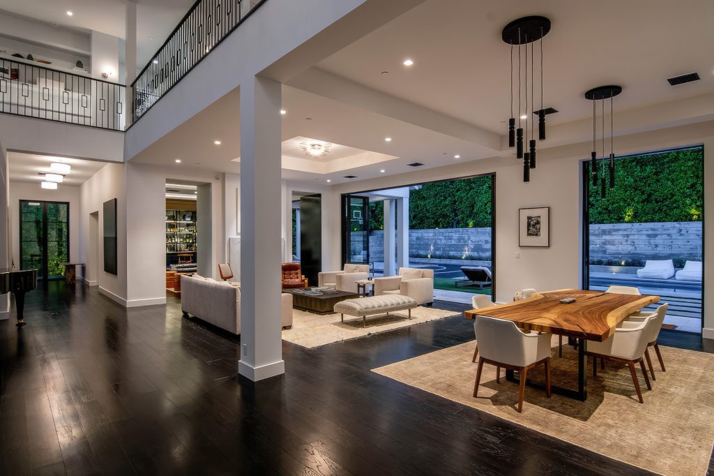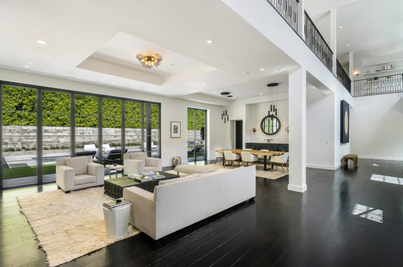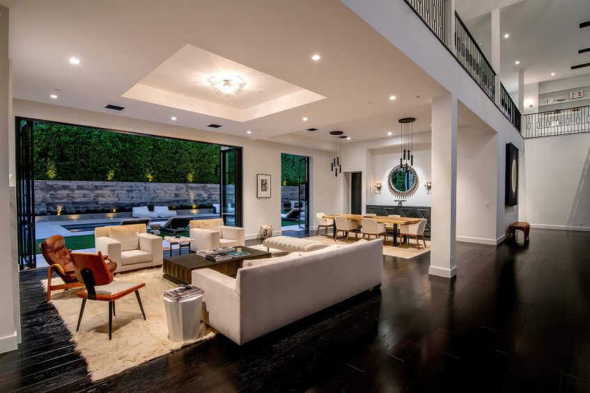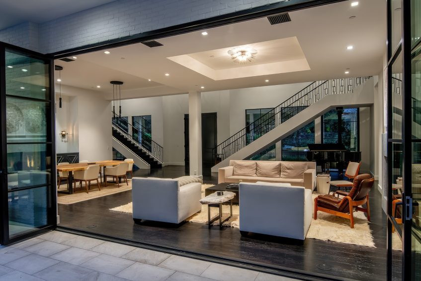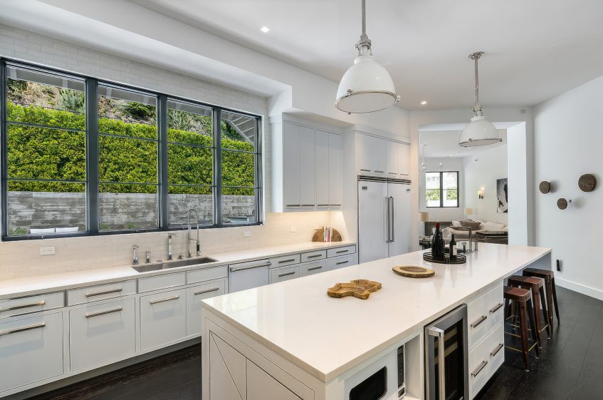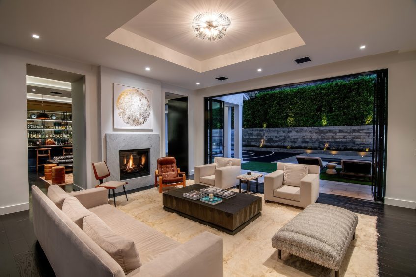 The residence was created to be an architectural masterpiece, reflecting a seamless blend of modern and farmhouse aesthetics, designed by Steve Wunderlich of 4C Design Group and realized by developer Justin Barth of Barth Partners with custom interiors by Hancock Design that add a refined touch to this Bel-Air change-maker. As a result, this estate at 1281 Stone Canyon Road is not just a home; it is a statement of luxurious living, offering a sanctuary of resort-style sophistication where every detail caters to comfort and entertainment.