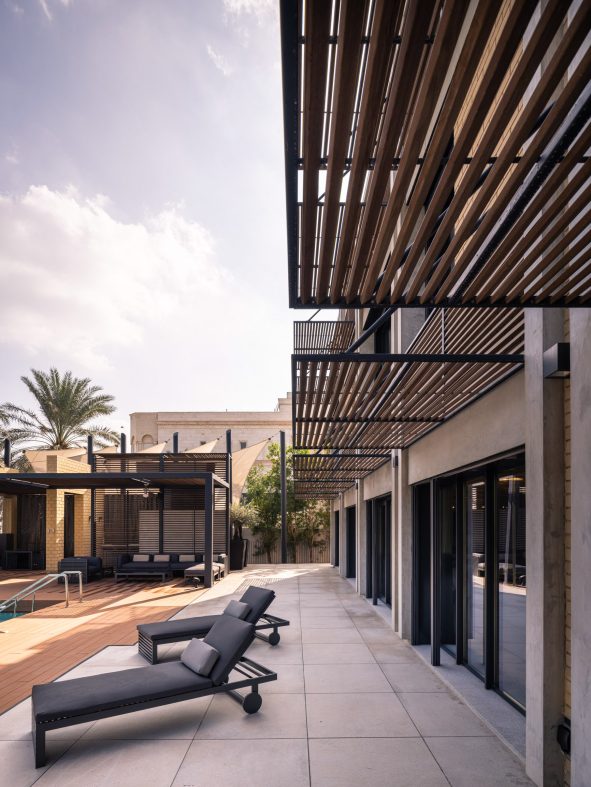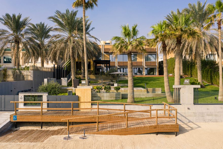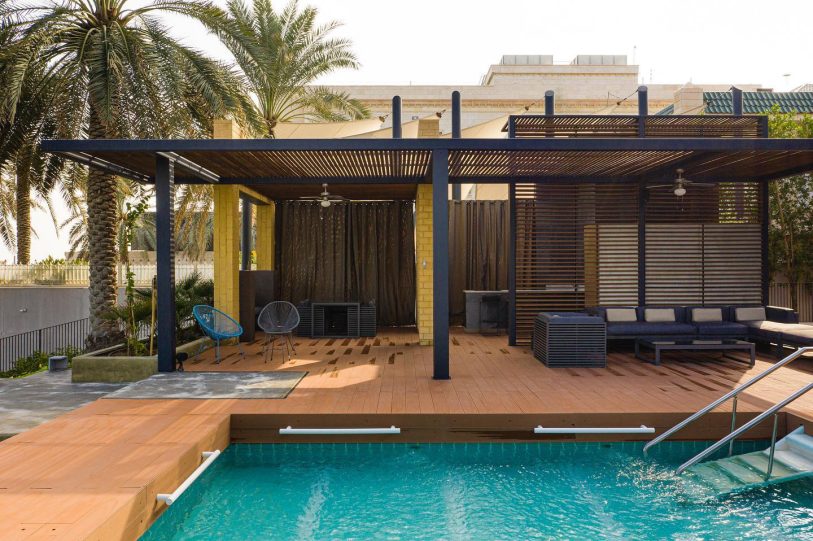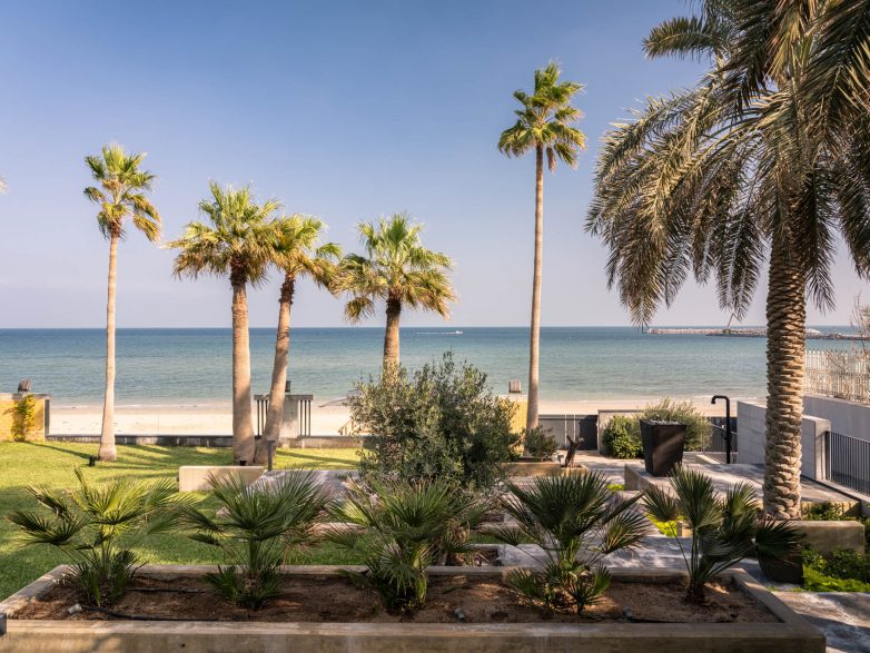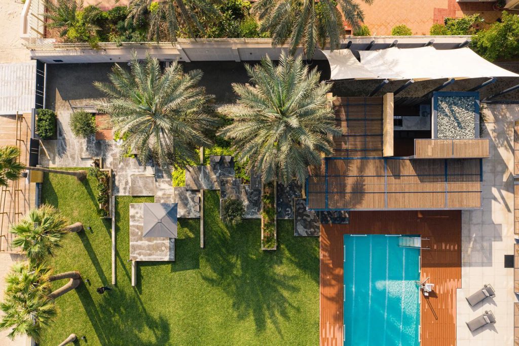 Concscape Beach House, by Babnimnim Design Studio, is a renovation project of a beachfront villa in Kuwait, which included a complete interior refurbishment as well as the addition of a pool house and landscaping extending toward the beach. The villa’s primary architectural elements were carefully preserved and refinished to enhance its original design lines.