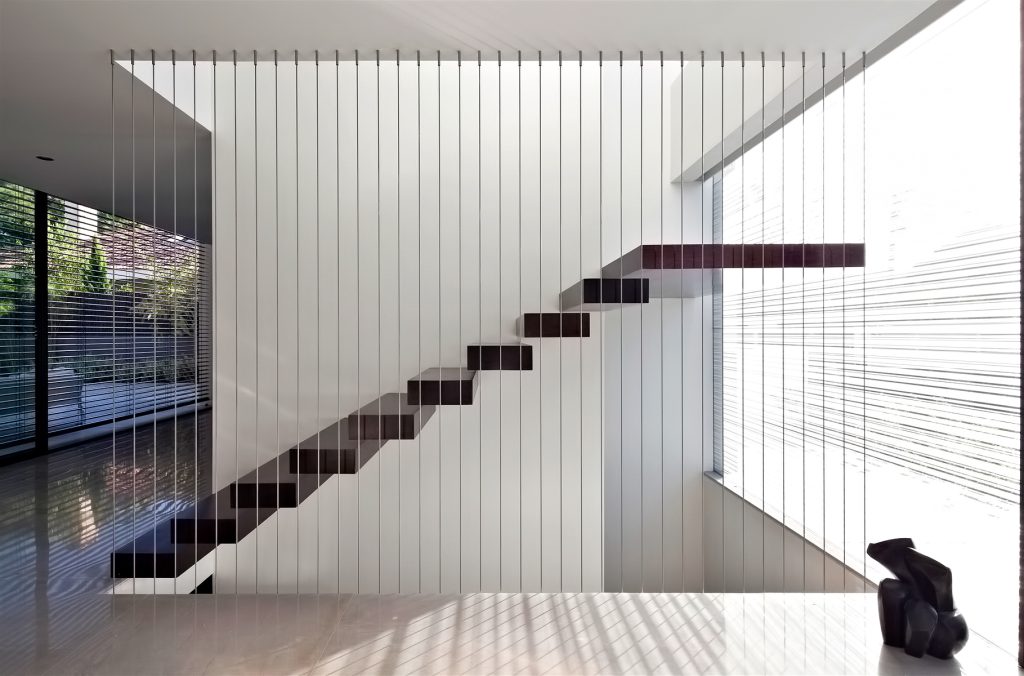 Architected to create an experience of continuous, intimate and defined spaces with different levels that mutually interact symbiotically with the central space, this sensational residence forms an iconic motif of modern luxury architecture that is both impressive and restrained at the same time. Horizontal and vertical surfaces conspire with different materials to create a unique atmosphere that is a powerful statement of uniformity and calmness.