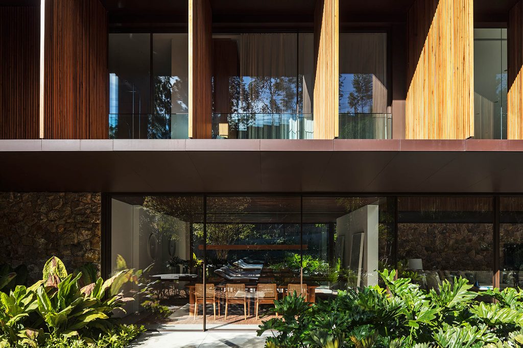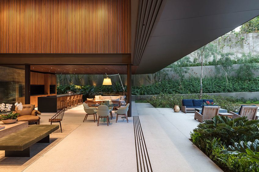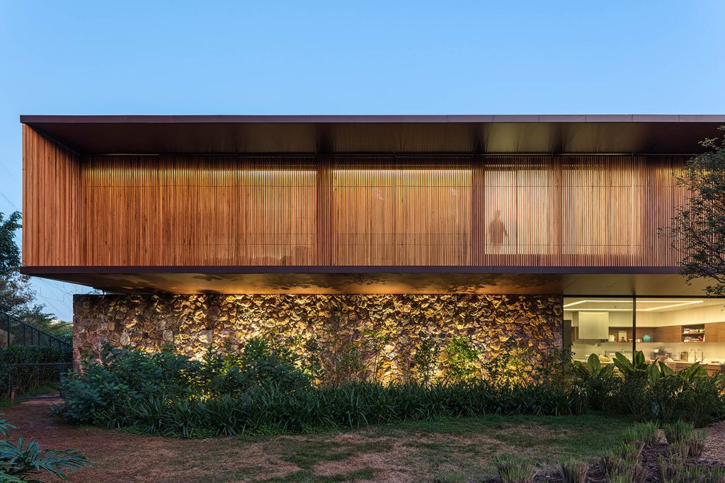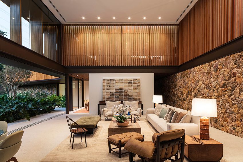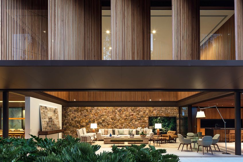 Set in Santana de Parnaíba, a picturesque city 40 kilometers from São Paulo’s bustling downtown, CVN House is a jewel of contemporary architecture within an exclusive gated community. This extraordinary residence graces a sprawling plot of 1,850 square meters, navigating a subtle six-meter incline to present a grandeur of 1,750 square meters spread over three levels. The design, an elegant L-shape, embraces a steel frame and stone facades to the south, providing a sense of grounded opaqueness, while to the north, it boasts expansive glass panels and brises, allowing soft, translucent light to grace the interiors.
