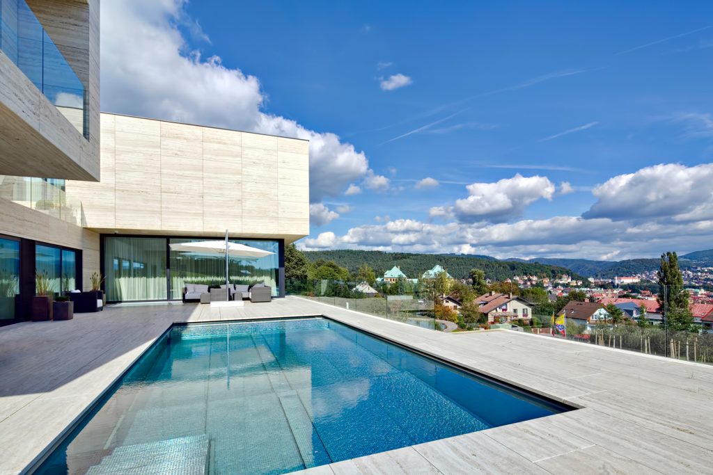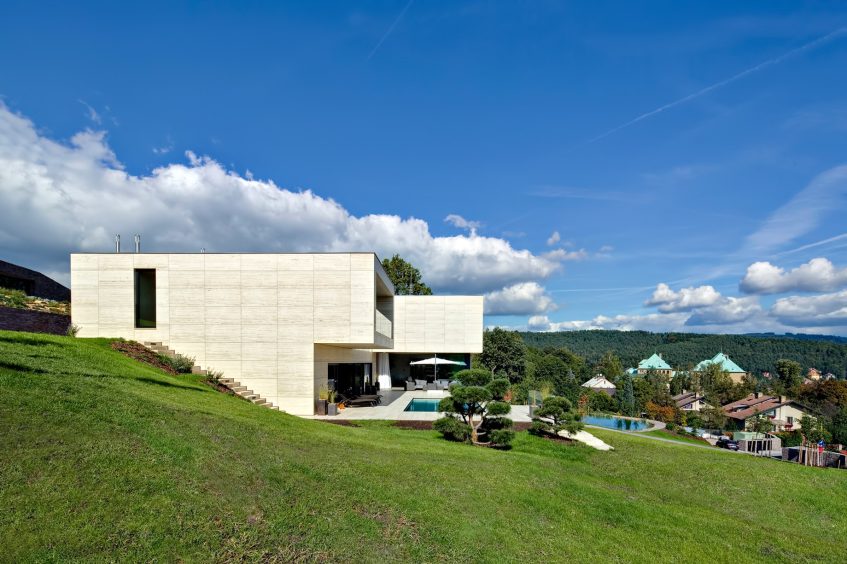 A brilliant matrix of contemporary architecture, the Decin Villa is situated on the edge of a natural divide in the landscape so that each floor is consistent with the land with its orientation providing spectacular views across the Usti nad Labem countryside in the Czech Republic. A significant example of contemporary architecture, this luxury residence offers a prime example of modern living in the countryside.