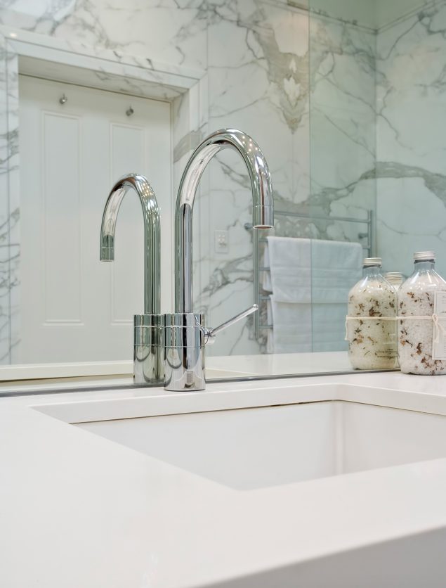 The home’s exterior and interior structural elements were extended to provide increased height, adding to the open feel and refining the home’s livability for an elegantly modern lifestyle.