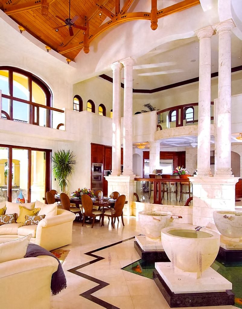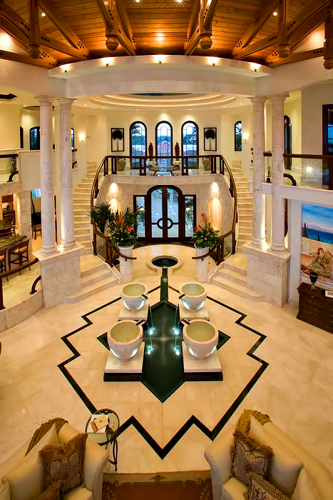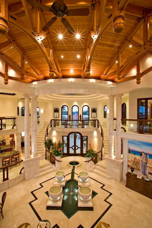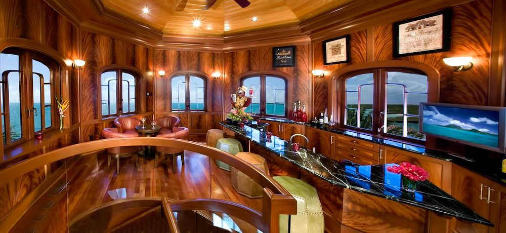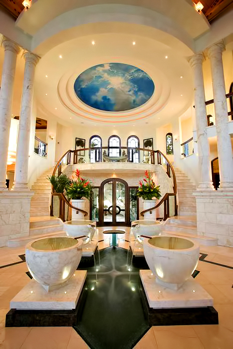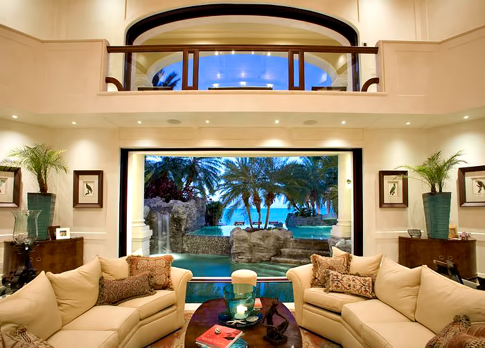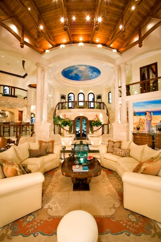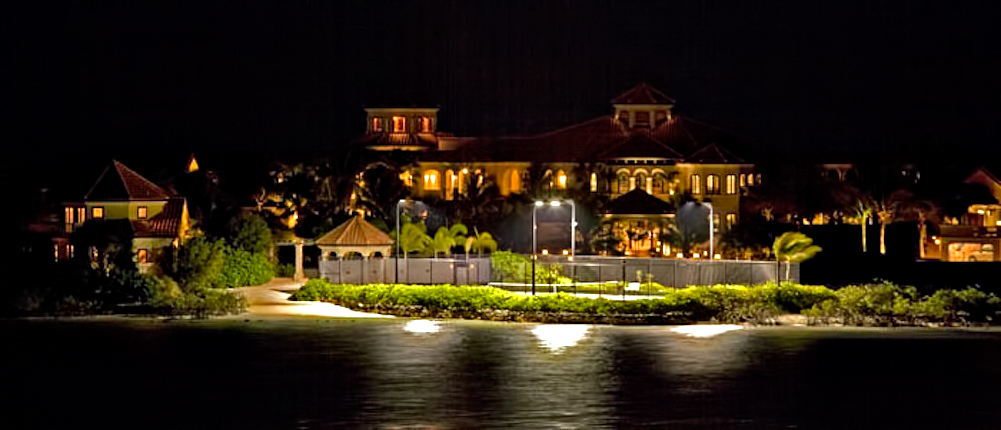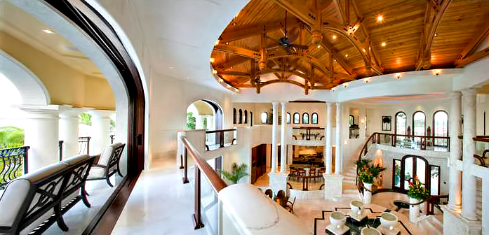 The result of six years of construction, this spectacular property combines pristine natural beauty with state-of-the-art luxury to provide the ultimate tropical hideaway. Accessed via a remote-controlled swing bridge and a Turkish marble driveway, this private island retreat on two-plus acres sits surrounded by turquoise water and white powder beaches. The magnificent estate encompasses approximately 30,000 square feet of sophisticated interiors. A Crestron system automates virtually everything in the residence, including lighting, air-conditioning, and audio. A breathtaking rotunda sets the tone for an array of dazzling living spaces including the three-story great room with 45-foot-high cypress ceilings; a three-story library; a sumptuous custom-designed master bedroom pavilion; and an award-winning home theater.