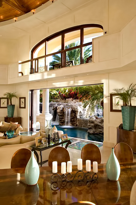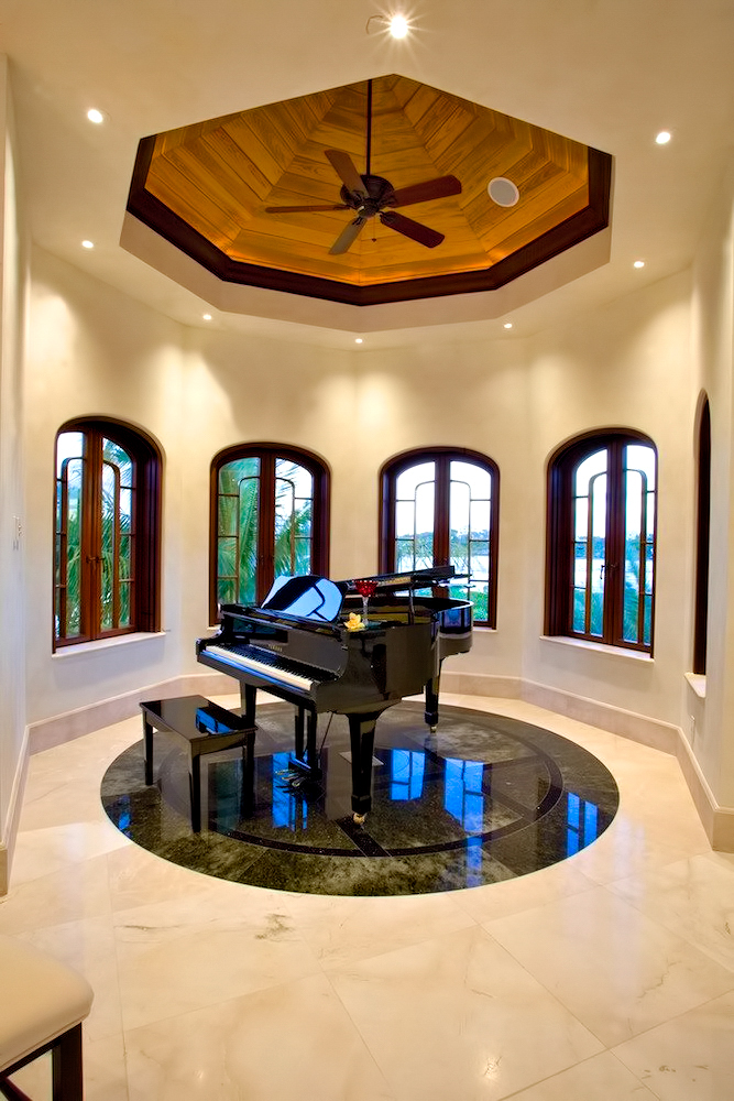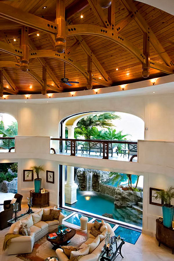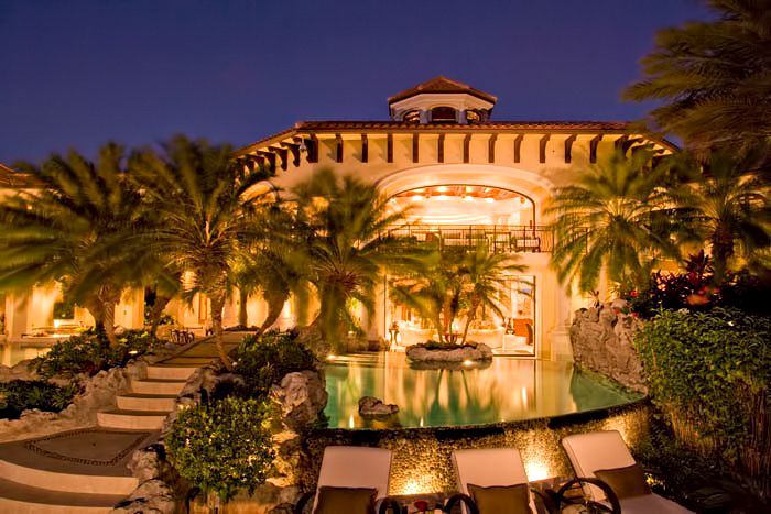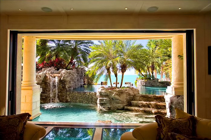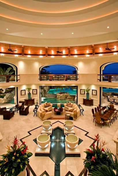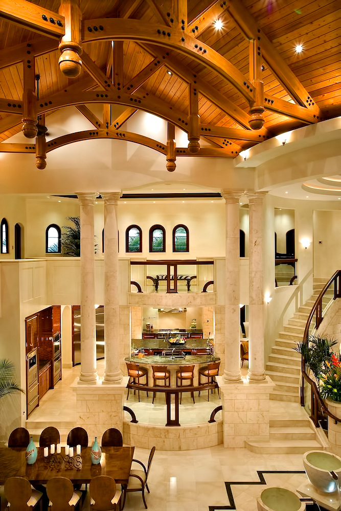 The result of six years of construction, this spectacular property combines pristine natural beauty with state-of-the-art luxury to provide the ultimate tropical hideaway. Accessed via a remote-controlled swing bridge and a Turkish marble driveway, this private island retreat on two-plus acres sits surrounded by turquoise water and white powder beaches. The magnificent estate encompasses approximately 30,000 square feet of sophisticated interiors. A Crestron system automates virtually everything in the residence, including lighting, air-conditioning, and audio. A breathtaking rotunda sets the tone for an array of dazzling living spaces including the three-story great room with 45-foot-high cypress ceilings; a three-story library; a sumptuous custom-designed master bedroom pavilion; and an award-winning home theater.