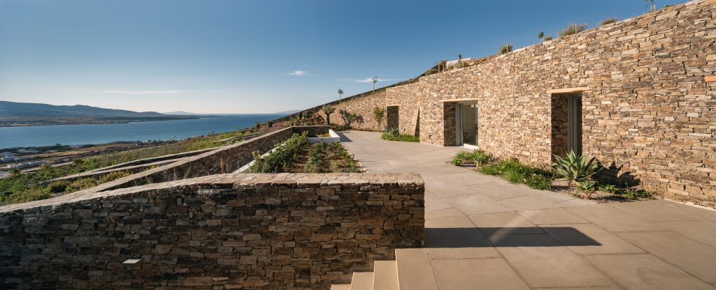 Encaved Stone Villa, by Tsolakis Architects, is ingeniously embedded into the steep slopes of Antiparos, an island renowned for its breathtaking views of Paros and the Cycladic archipelago. The design integrates the structure harmoniously into the rugged landscape, marrying varied volumes and subterranean spaces to the rocky terrain.