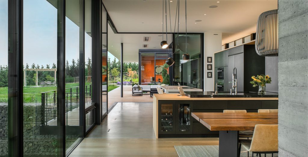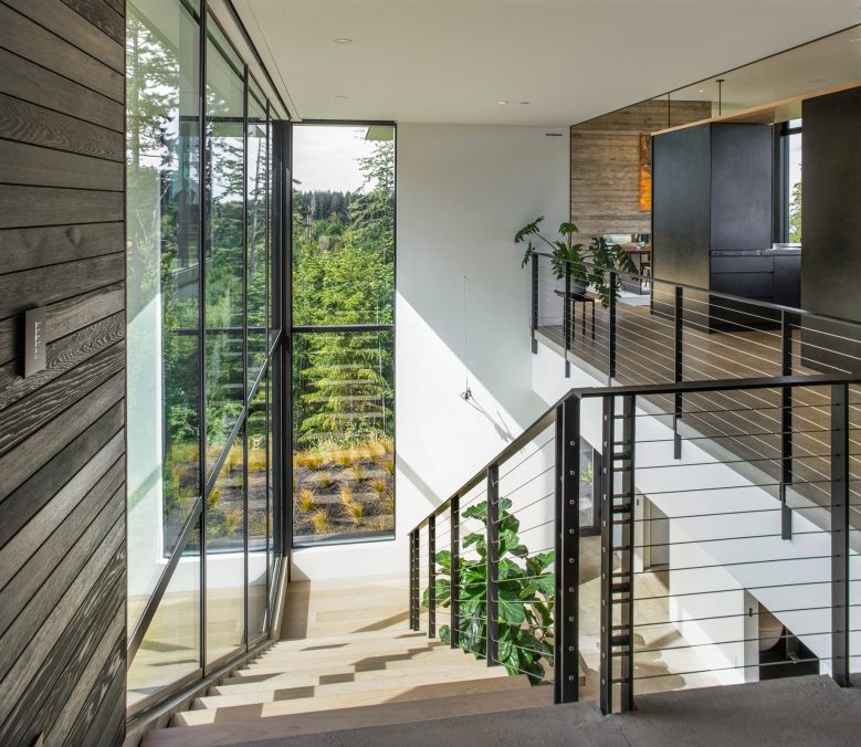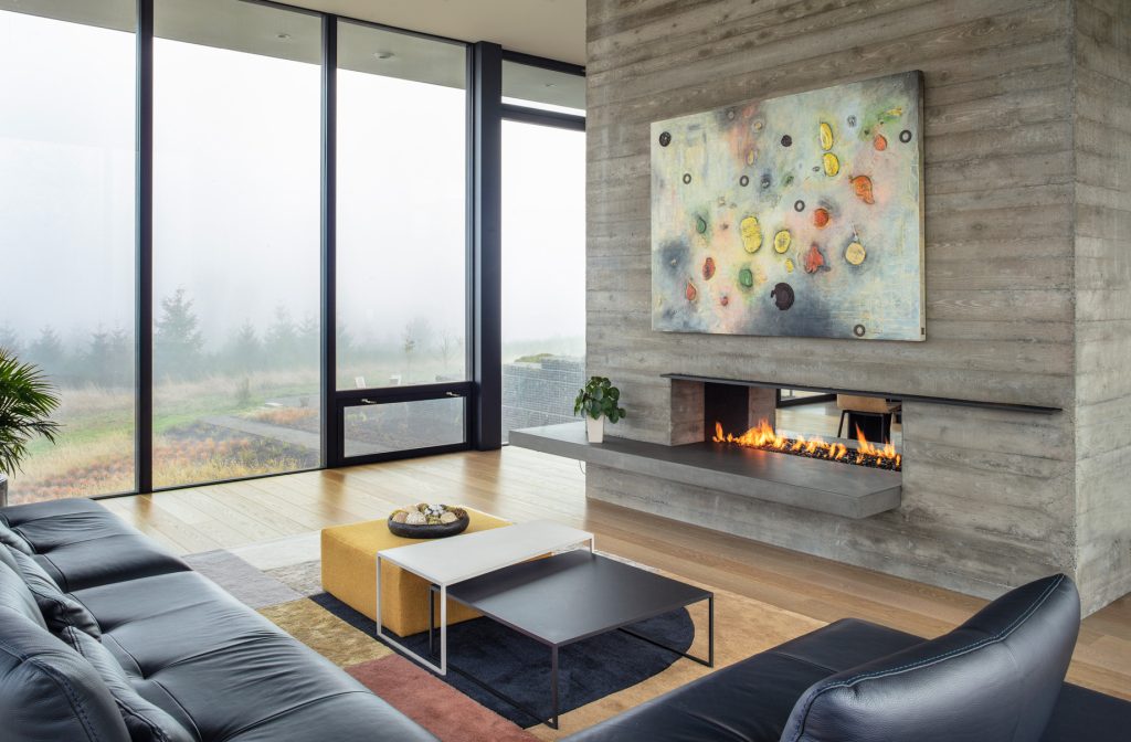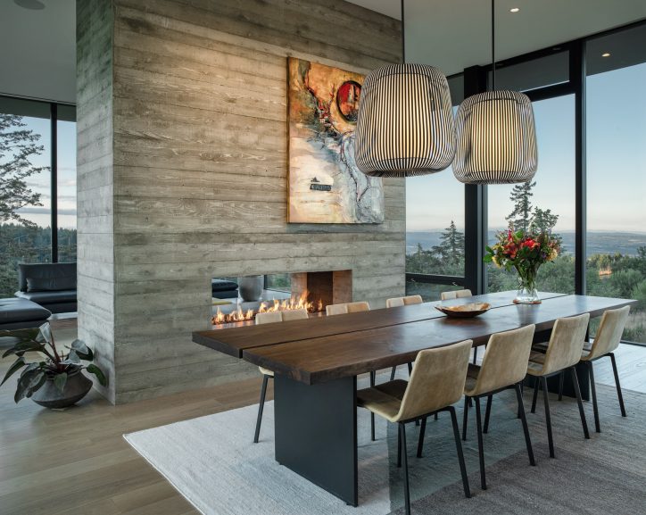 Raw materials such as concrete, wood, and steel are intentionally juxtaposed throughout the minimalist house, lending it a sense of richness and organic appeal. The interior spaces are thoughtfully designed to create moments of pause and appreciation for the surrounding views and curated art. The Five Peaks Lookout is a testament to the fusion of modern design, natural beauty, and the pursuit of harmonious living in the Pacific Northwest.