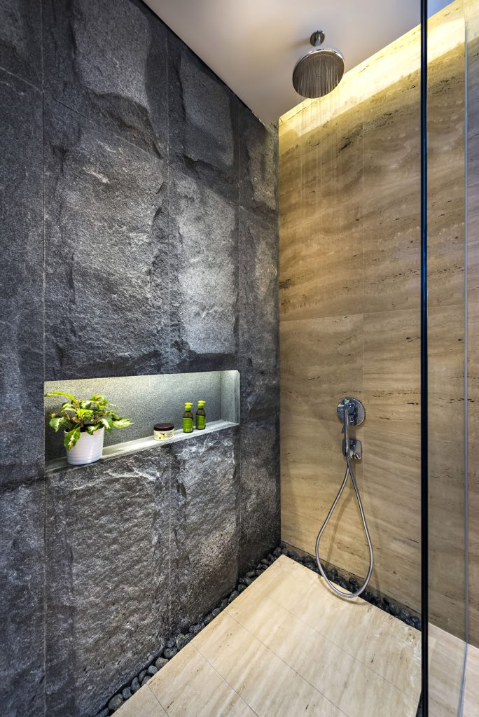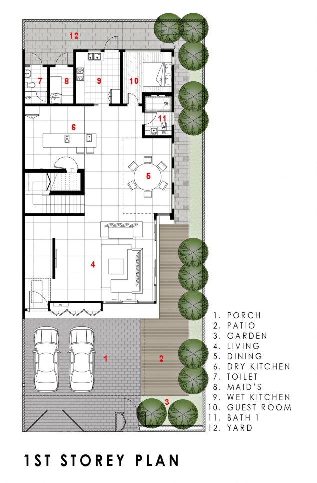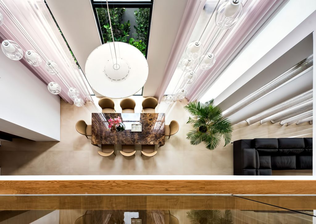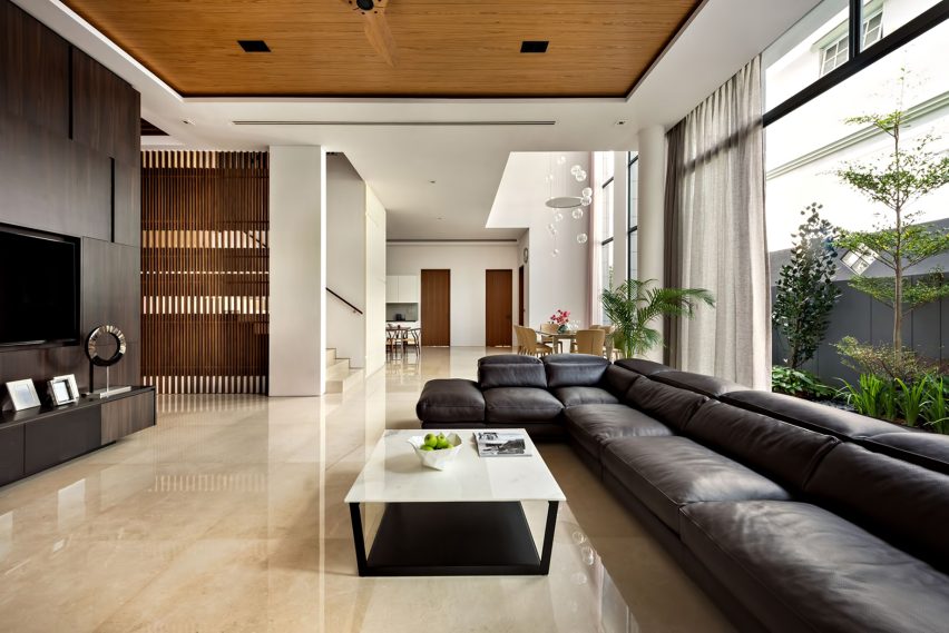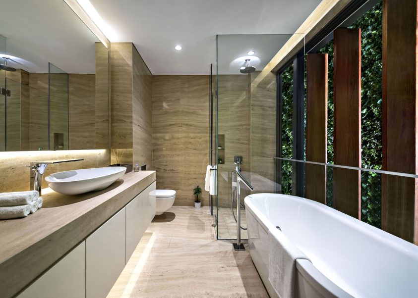 Good natural lighting was also introduced through full height glazing at the living and dining areas. A skylight at the stair well brings in natural light into the central core area. Bathrooms were all naturally ventilated with the master and junior master bathrooms having the added feature of a green wall facing the shower and long bath.