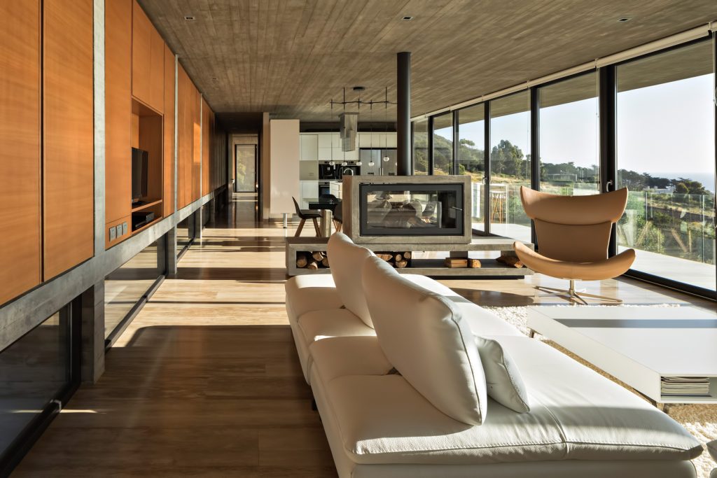 The project consists of an access level in which the common areas are located: living room, dining room and kitchen in a single space, without partitions or columns, in addition to the master bedroom plus its bathroom. The lower level, with access from the outside, contains a family room and secondary bedrooms. The great beam-wall that frames the main facade of the project is, in turn, a long piece of wood furniture that runs throughout the house, serving the enclosures according to their use.