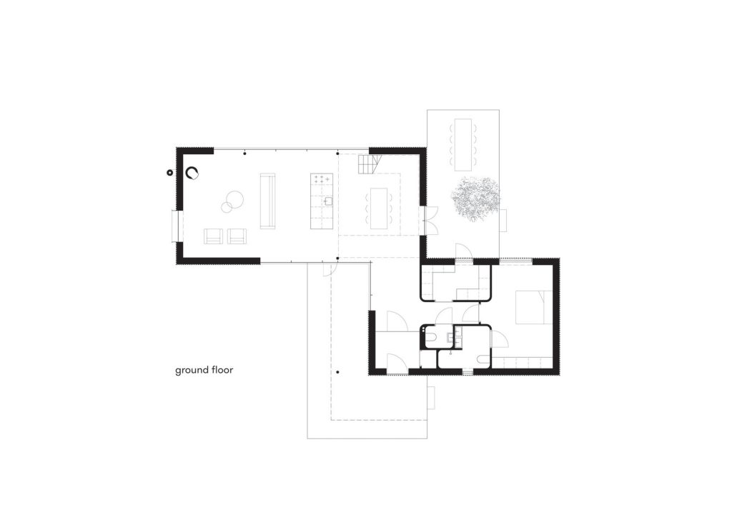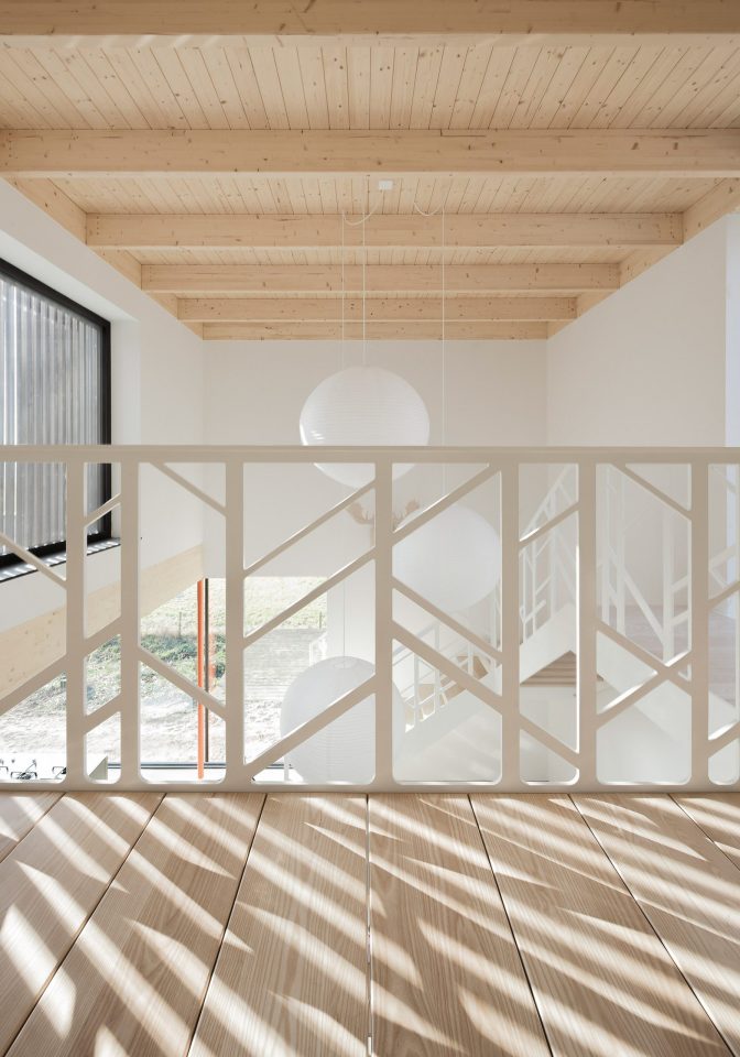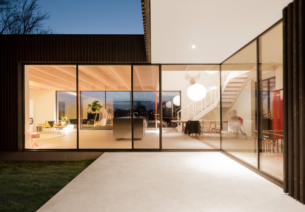 Constructed with precision and speed, the house was designed in close collaboration with the main contractor, with prefabricated wooden wall elements CNC-cut in Germany and assembled on-site in less than a week. This efficient construction method not only reduced costs but also allowed for reinvestment in energy-efficient technologies, such as high levels of insulation, a heat recovery system, and solar thermal collectors. The result is a home that is not only visually harmonious with its surroundings but also highly sustainable, requiring minimal external heat even in the coldest winter months.